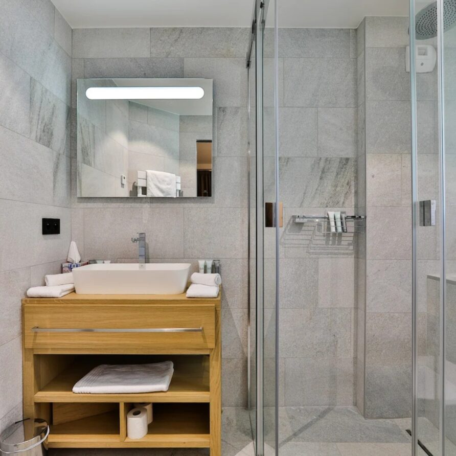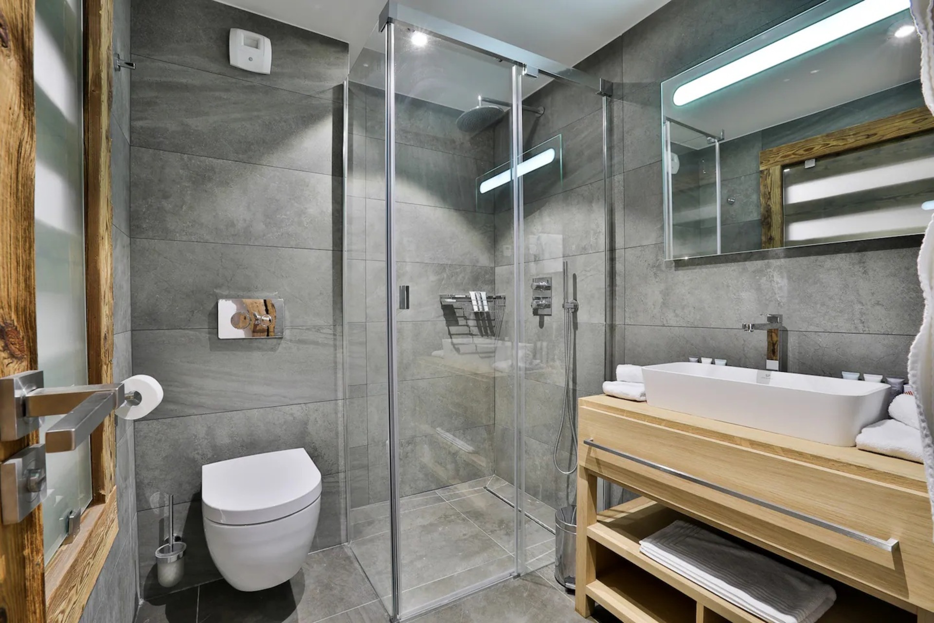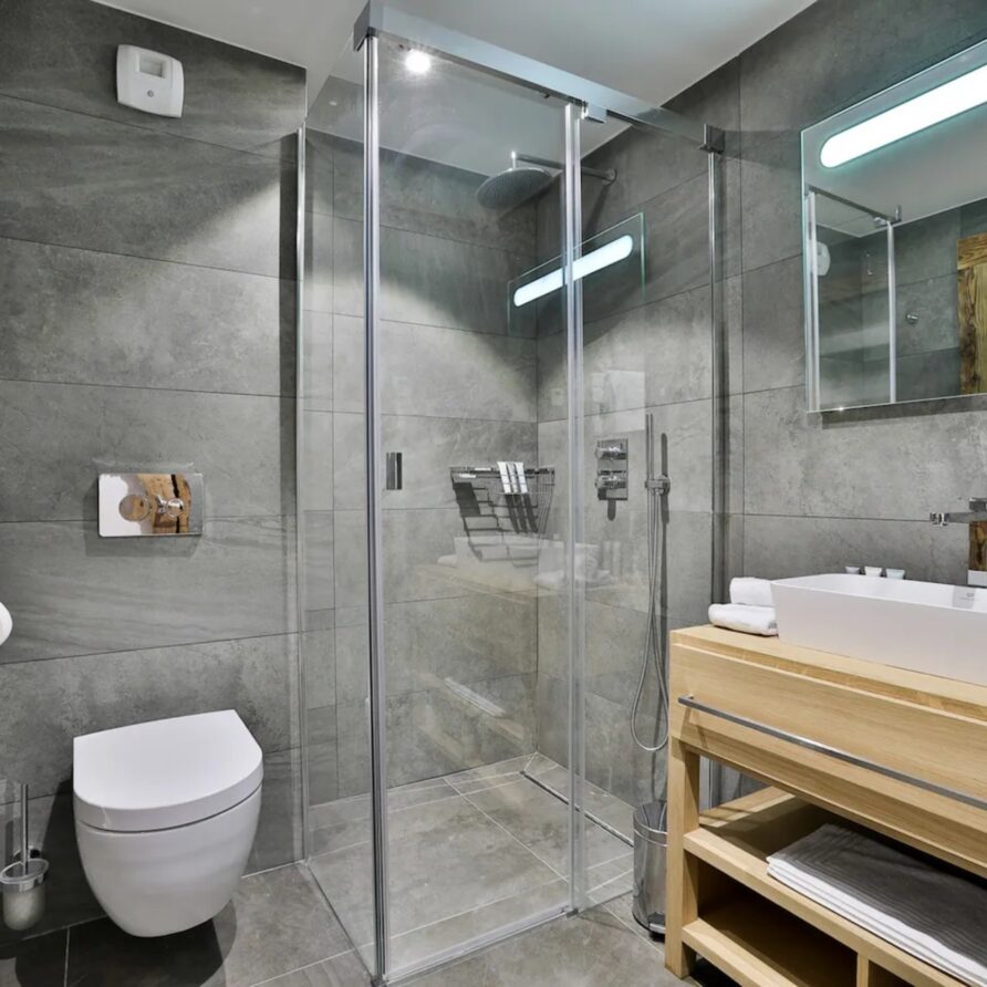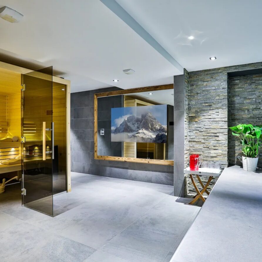 Luxury Chalet Annecy with pool features a great selection of rejuvenating wellness facilities to ensure you fully unwind on your luxury holiday. Refresh yourself in the indoor swimming pool with jet stream, or relax in the sauna after a long day. Alternatively, guests can take part in a spot of yoga or a spin class by streaming their preferred class on the in-mirror TV.