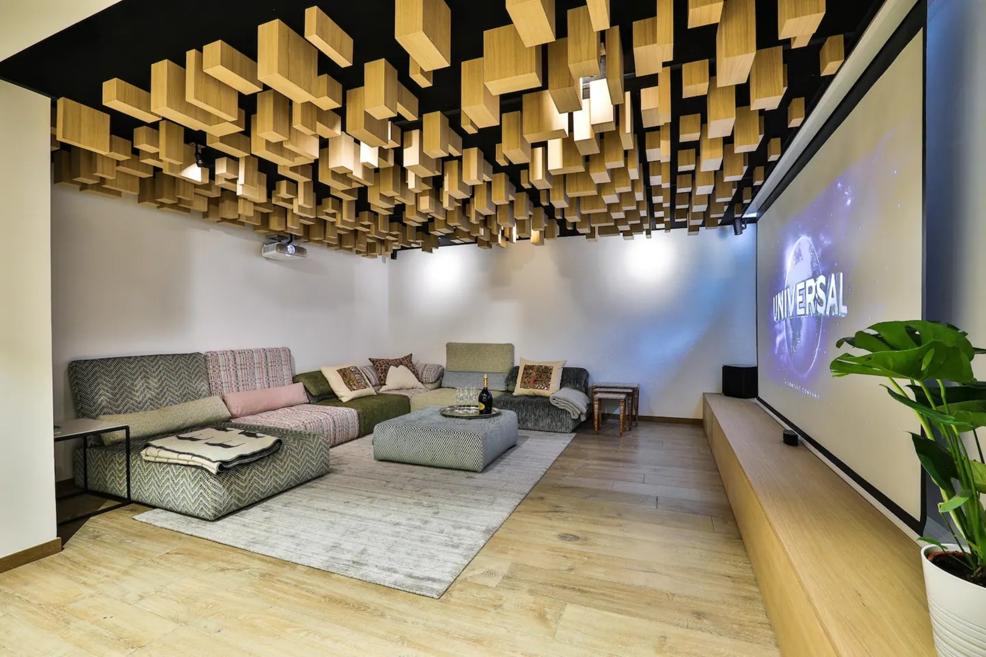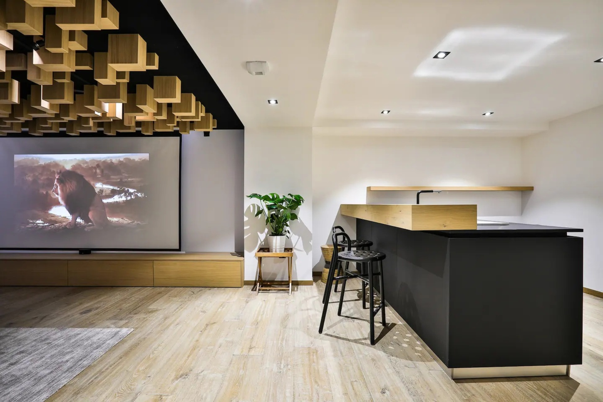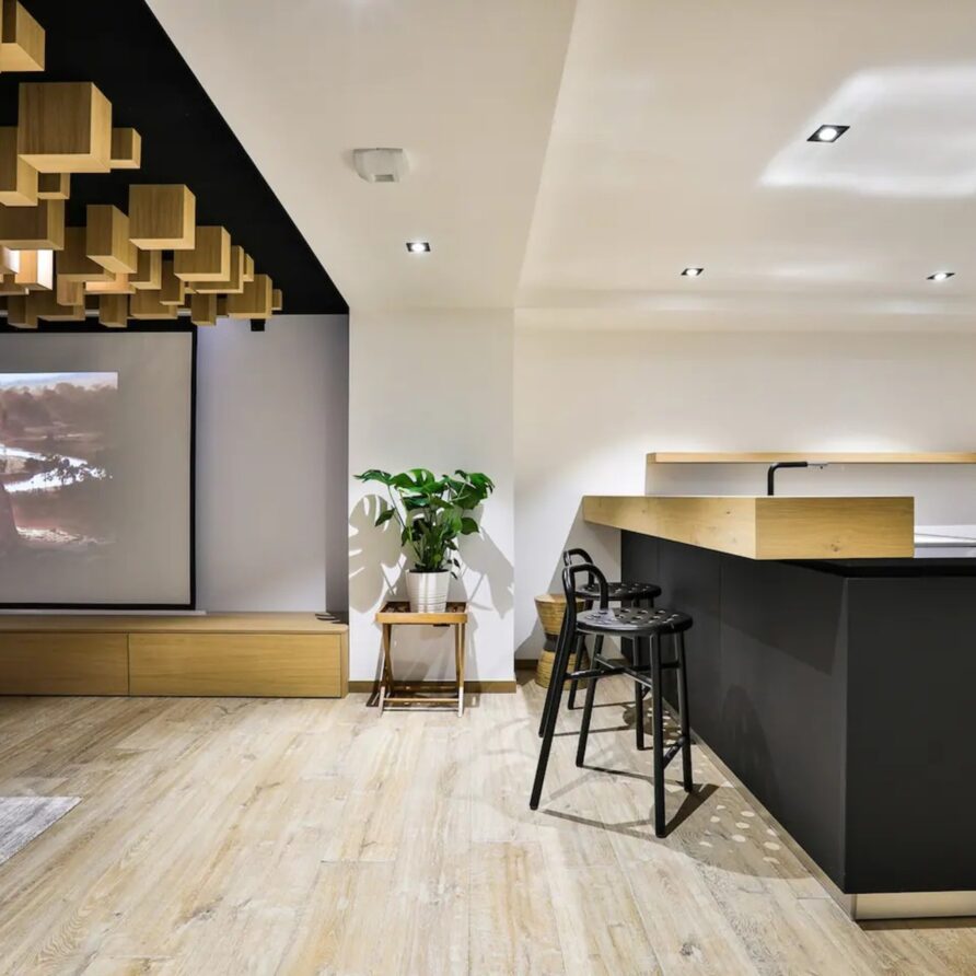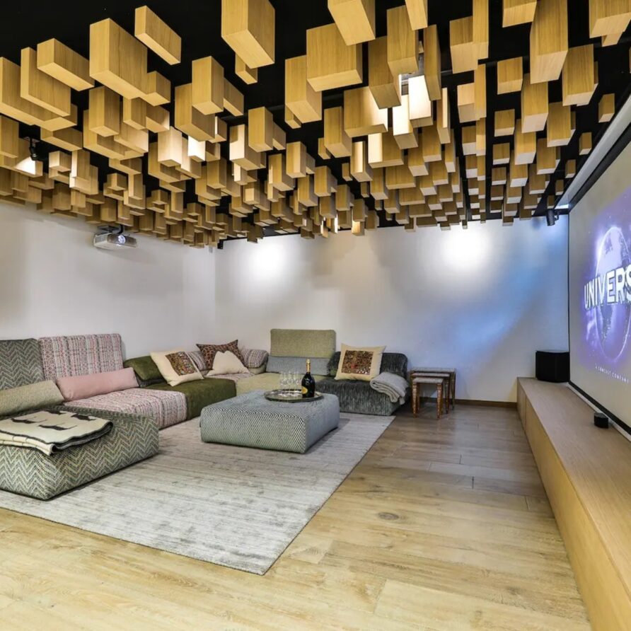 For cosy evenings in, head towards the cinema room featuring a drop-down large screen and projector, perfect to continue watching your favorite series. As you chill out, take a drink from the nearby bar, with surround sound too, it really is the perfect entertainment space. For quieter moments or if you need time to catch up with work emails, a mezzanine area provides the ideal office space.