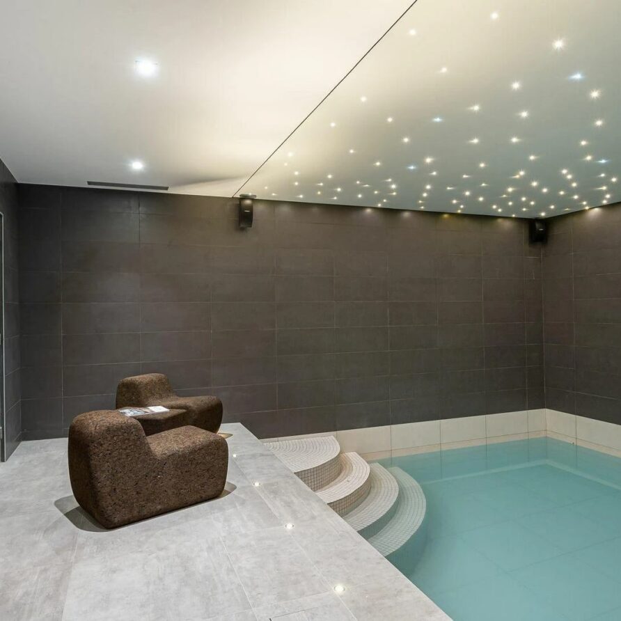 After an action-packed day on the slopes, indulge in mountain chalet exceptional wellness facilities. The private spa area, featuring an indoor swimming pool, sauna, and Hammam, provides the ultimate venue for relaxation. Additional amenities include a private garage, laundry facilities, and a spacious ski room equipped with boot heaters, ensuring you start each day with warm, dry boots, ready to explore the endless slopes.