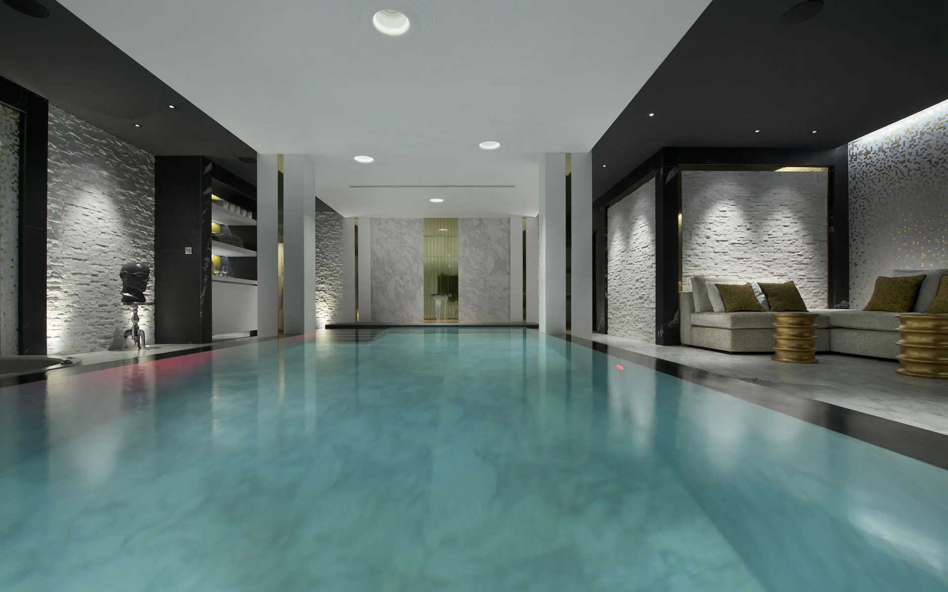 While the living area is a relaxing space, the chalet benefits from a showstopping private spa and wellness area. There’s a large 10m chalet swimming pool, an indoor hot tub, sauna, hammam, and treatment room for post-ski massages. For working out the chalet benefits from a well-appointed fitness suite with a variety of free-weights and cardio options.