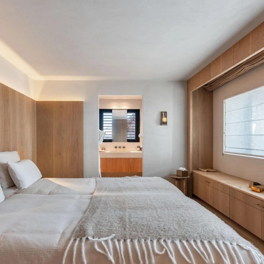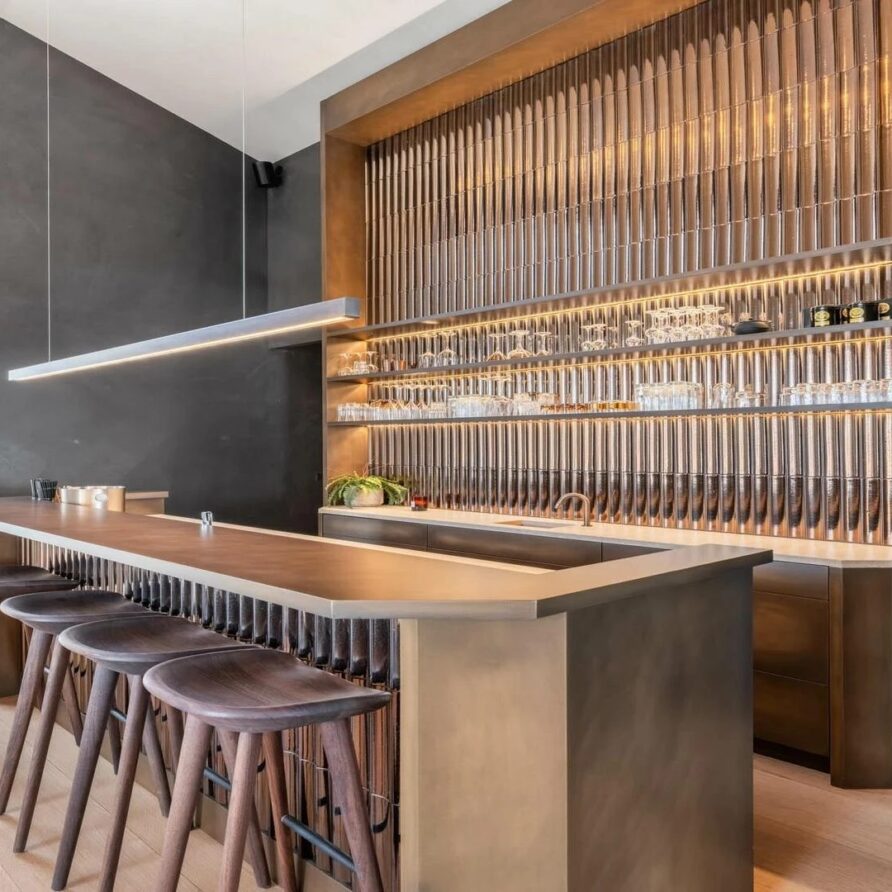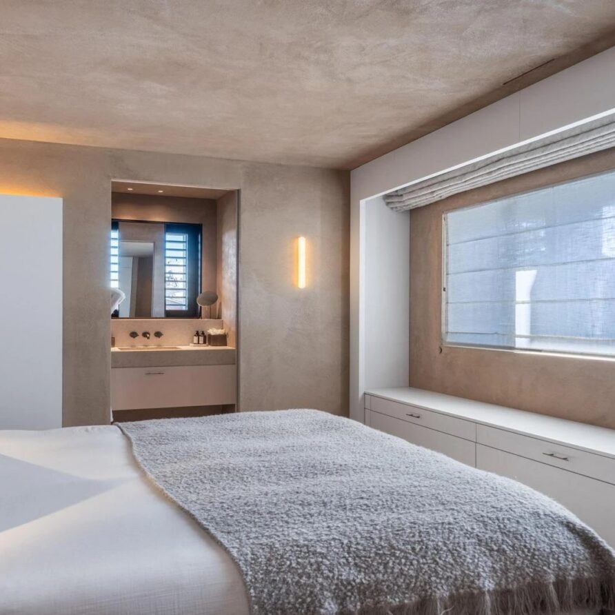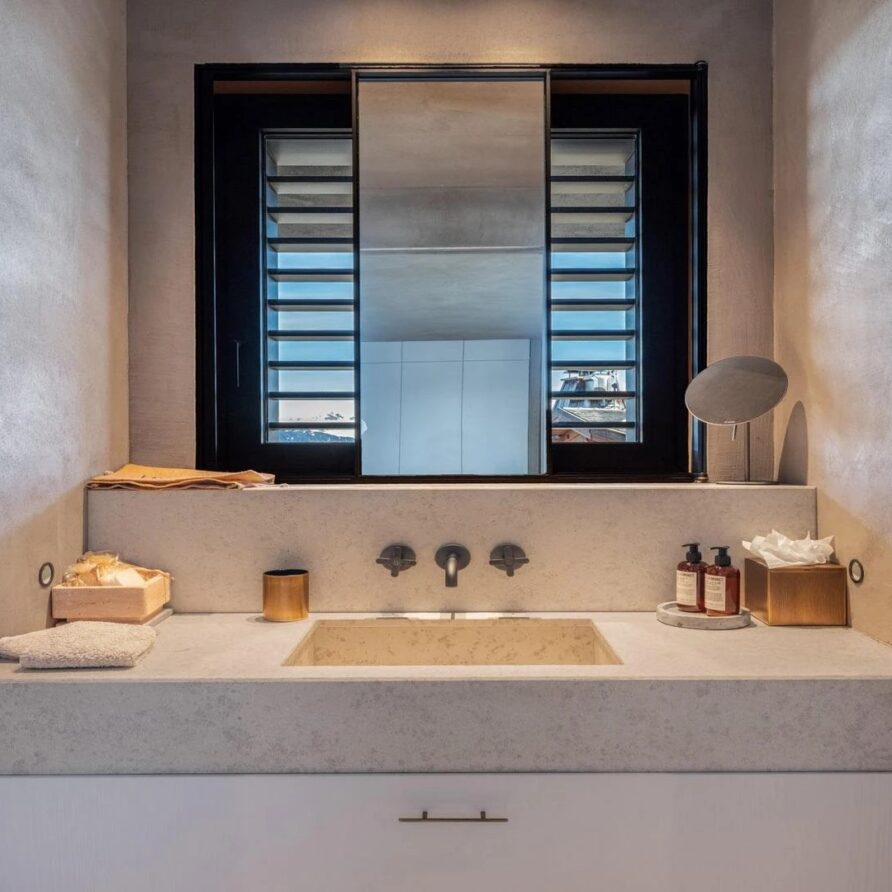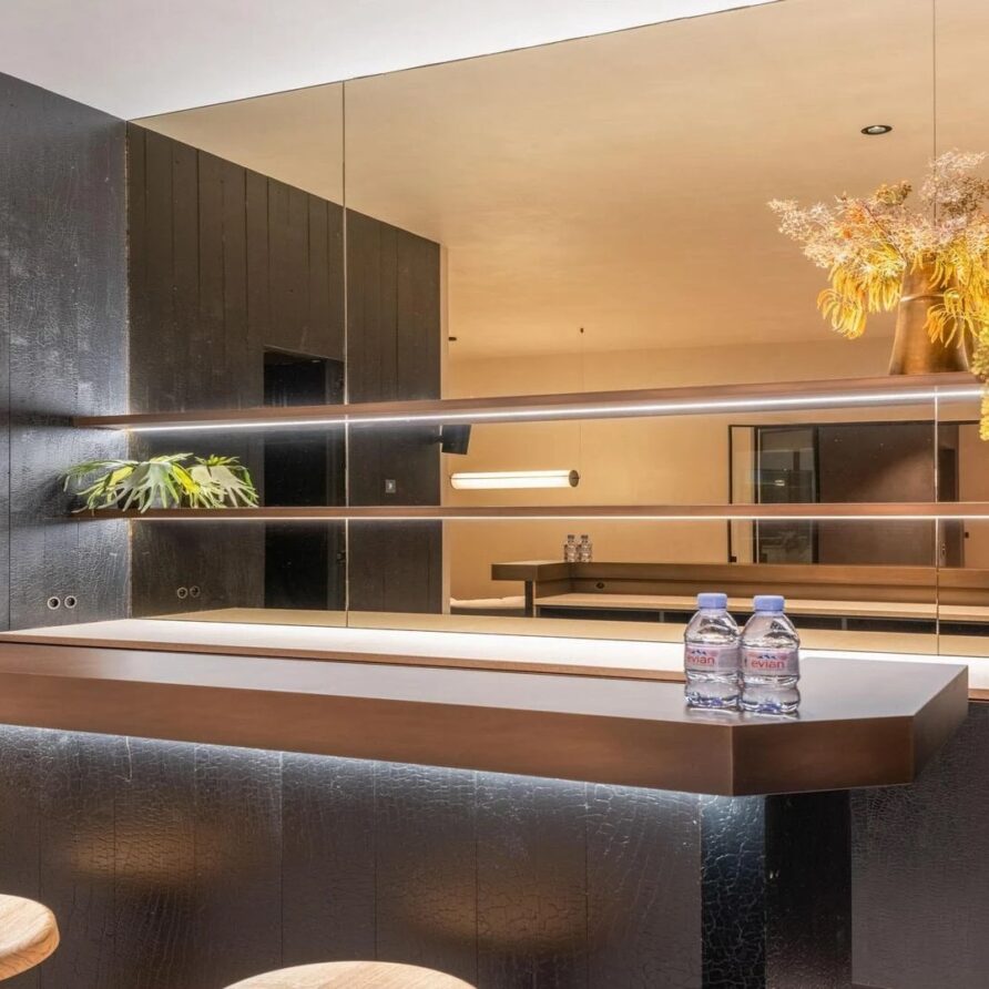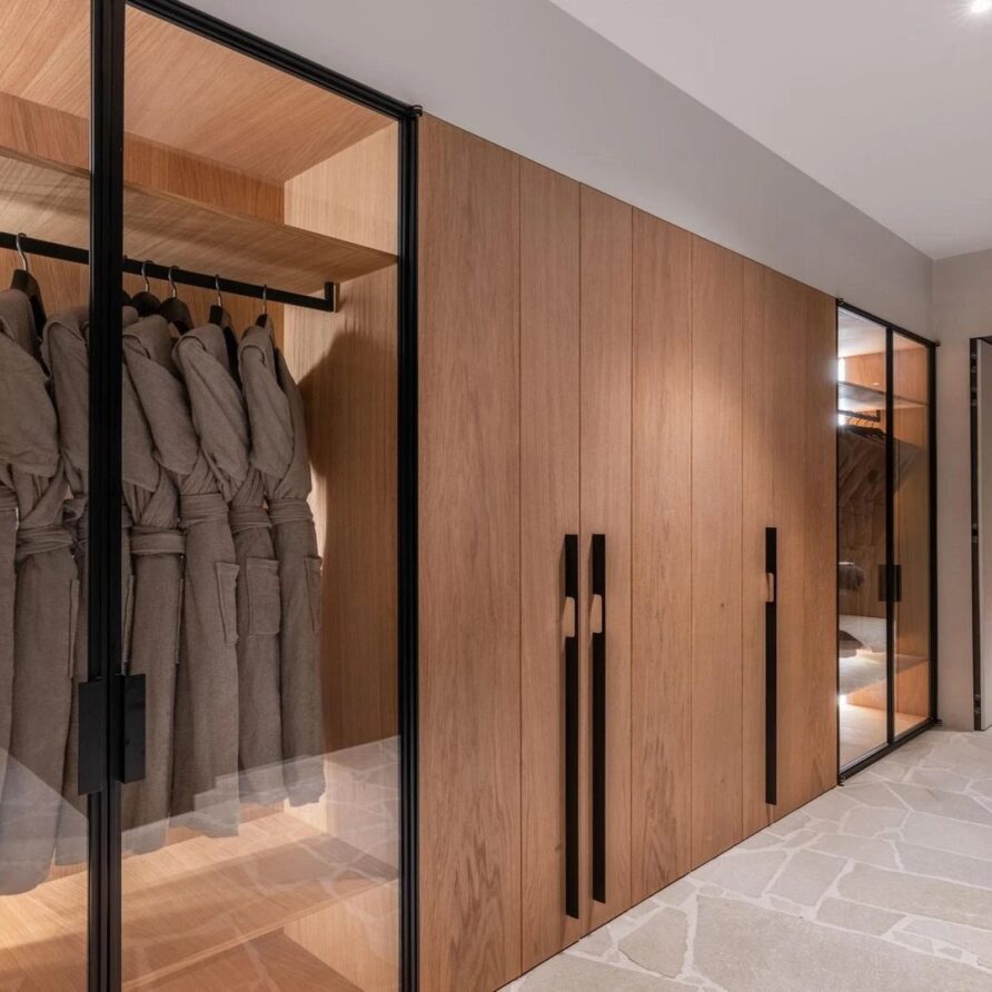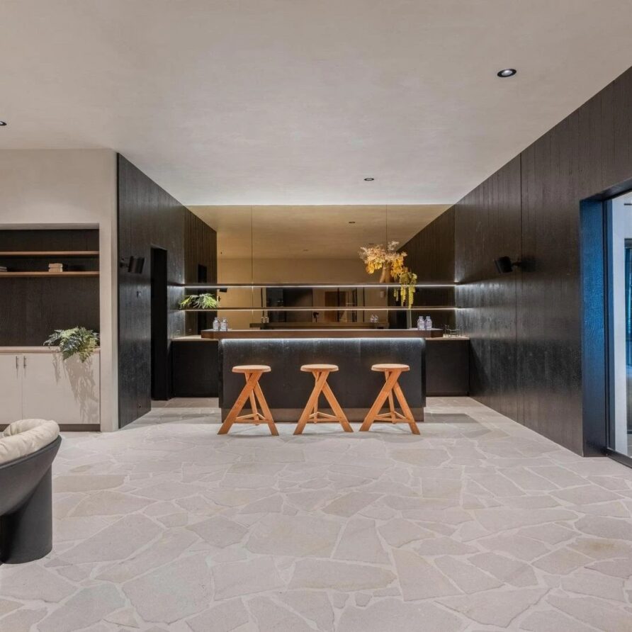 Socializing and entertainment are seamlessly integrated into the chalet’s design. A stylish bar provides a chic space for guests to enjoy handcrafted cocktails and unwind after a day of skiing in Courchevel. The lounge area offers a cozy retreat, ideal for intimate conversations or simply enjoying the warmth of the fireplace.