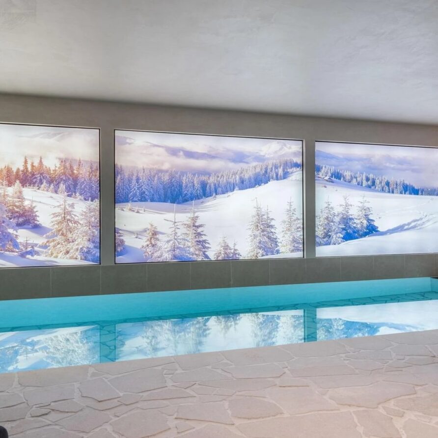 The centerpiece of this enchanting chalet is its impressive wellness area, designed to provide the ultimate relaxation and pampering. The wellness area boasts a stunning swimming pool, inviting guests to take a refreshing dip or simply bask in the serene ambiance. For those seeking tranquility, the sauna and steam bath provide a blissful escape, allowing guests to unwind and rejuvenate their senses.