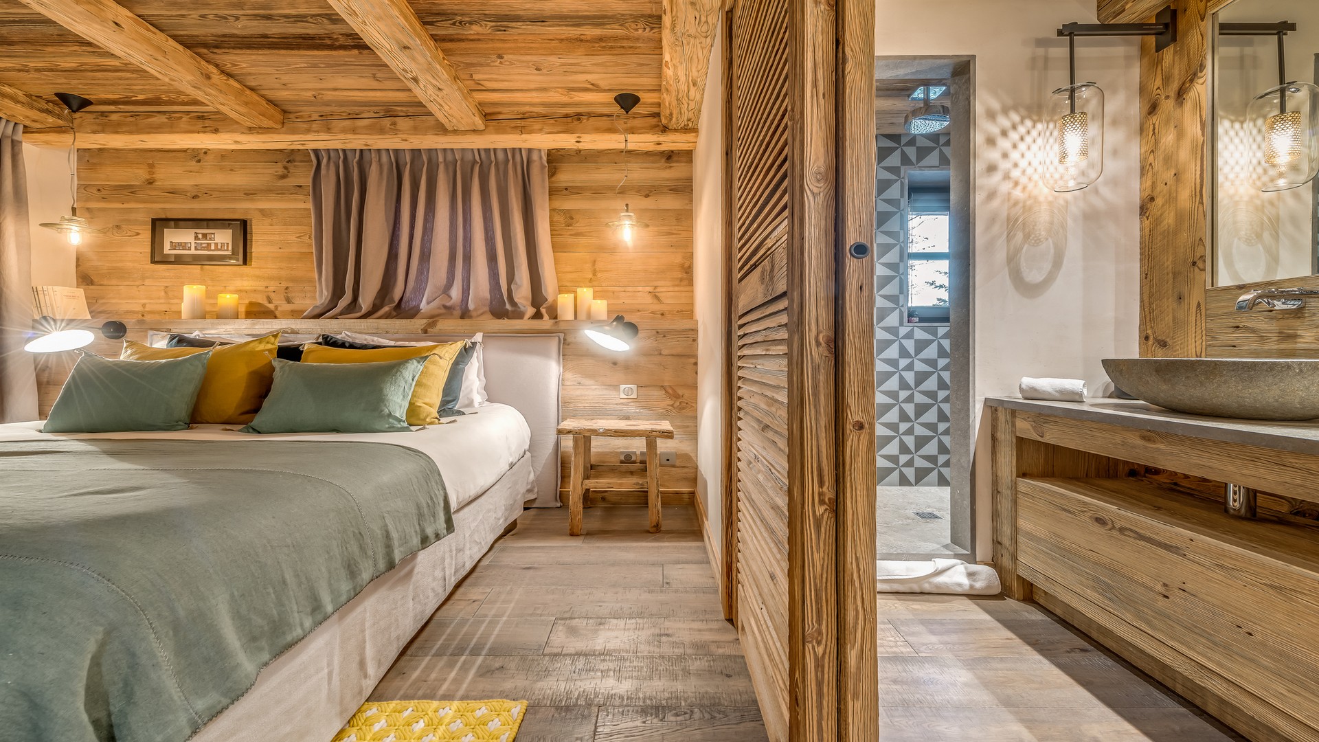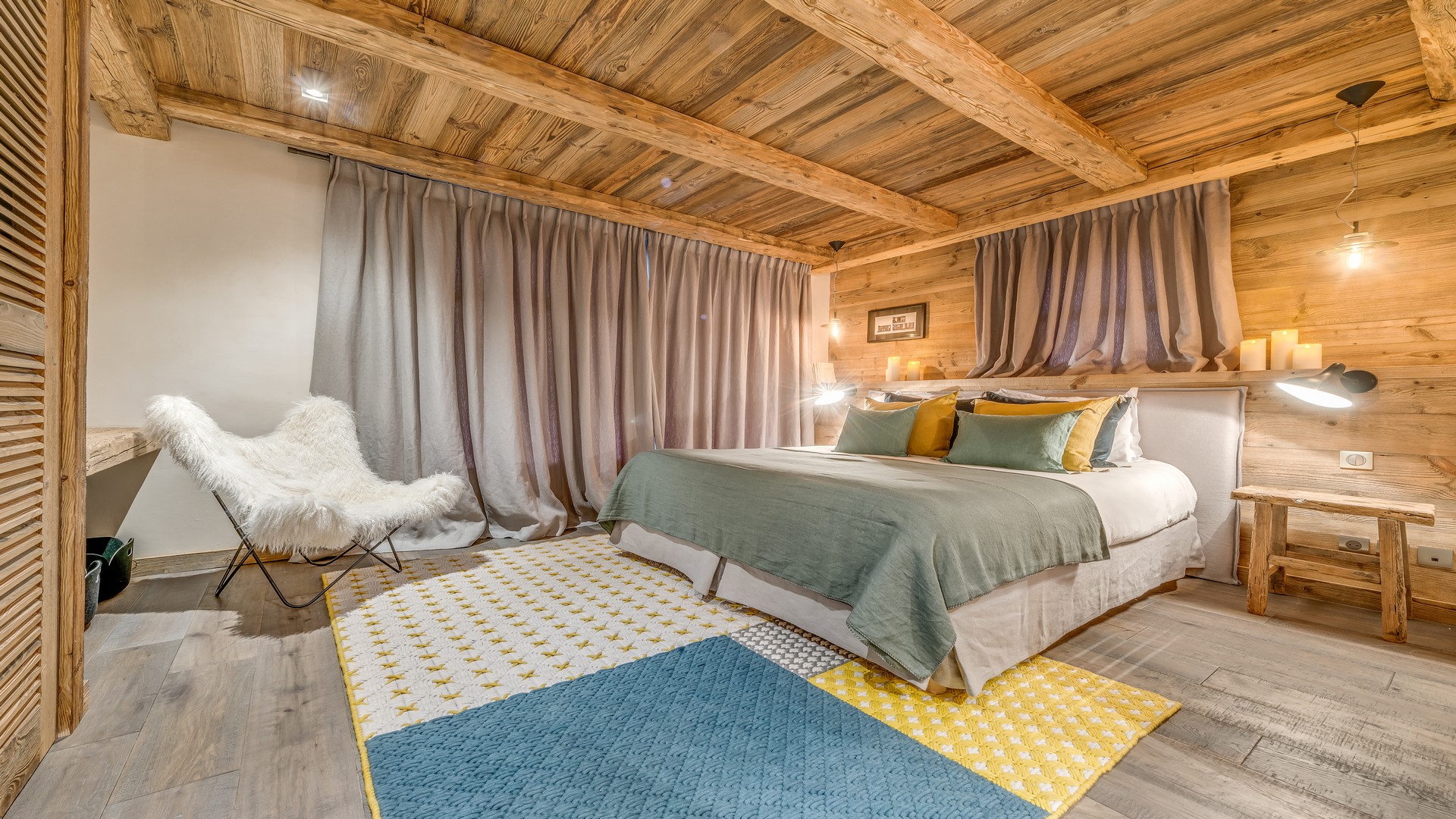 The holiday chalet is spread over four levels and an expansive 350sqm. The interiors are harmonious and modern and the four en-suite bedrooms are complemented by a sauna, a massage room and a beautiful indoor pool. If you are looking for contemporary living space that is beautifully finished this chalet would be an ideal choice.