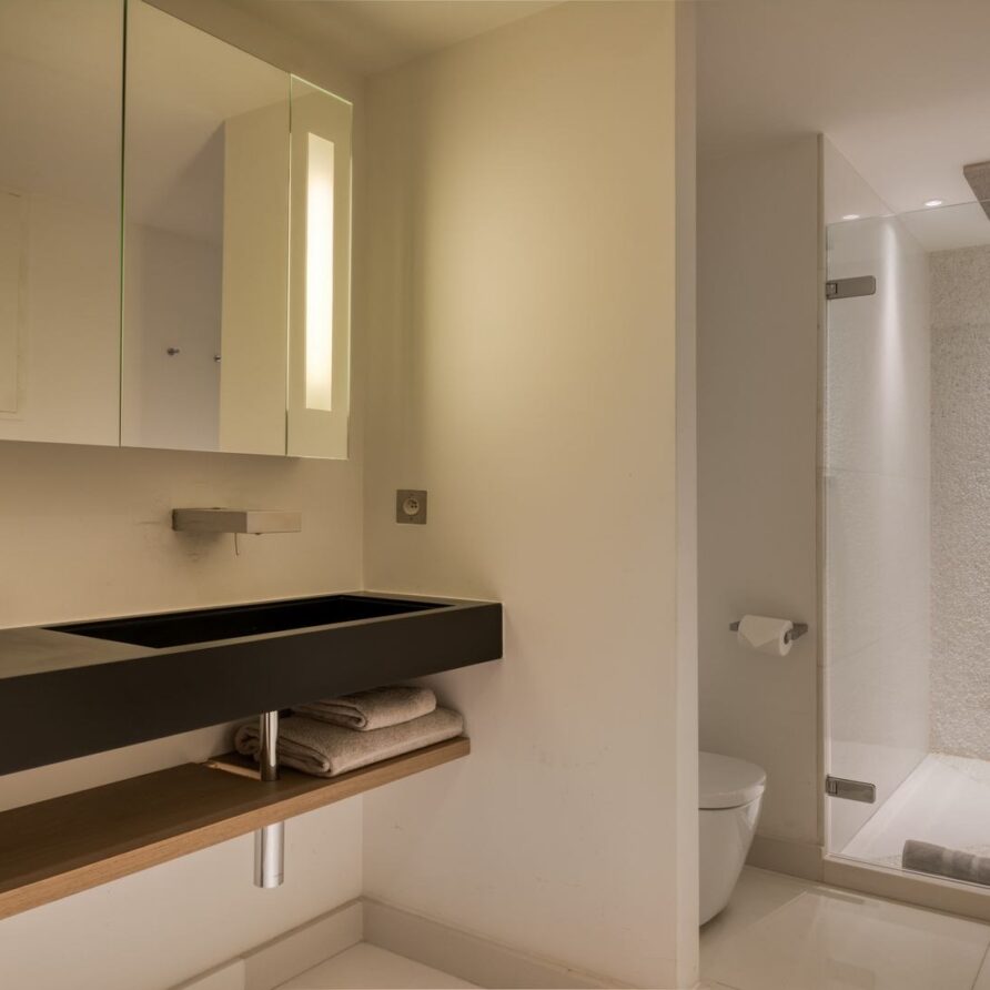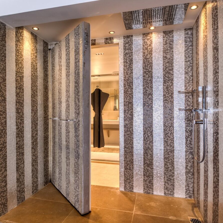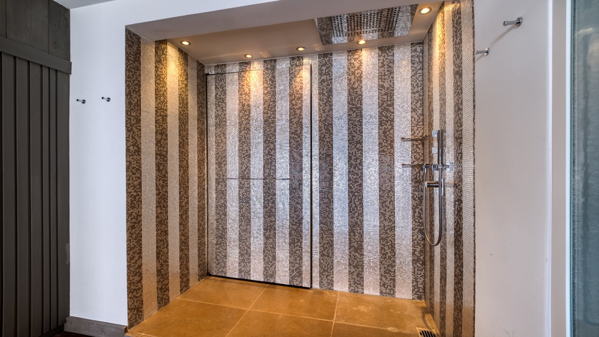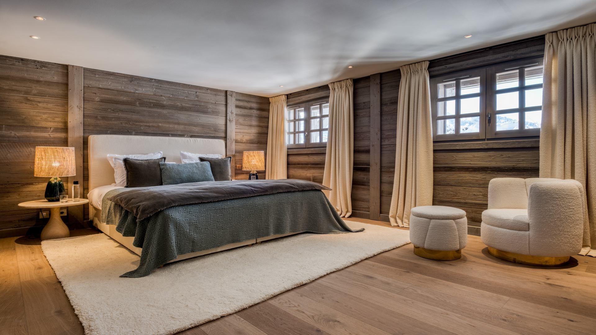 The chalet accommodates groups of 12 guests amongst its 6 delightful bedrooms. The main bedroom floor is the chalet’s garden level, where all except the master bedroom are found. Lovingly finished with natural materials, such as wood, leather and sheepskins, these private settings present a real luxury cocoon to unwind in at the end of the day, with beautifully complemented en-suite bathrooms, rivaling those found in luxury boutique hotels. The chalet first floor is home to the master double bedroom. Featuring plenty of space, this bedroom also has the additional luxury of direct access to the wellness area, leading on through the bedroom’s en-suite facilities.