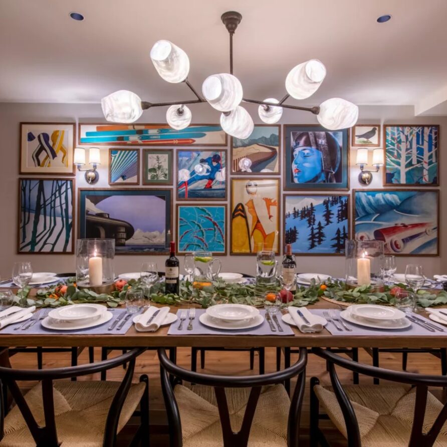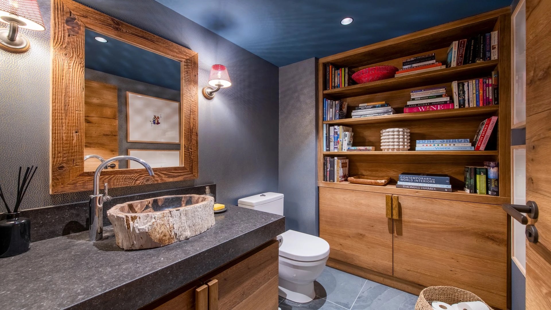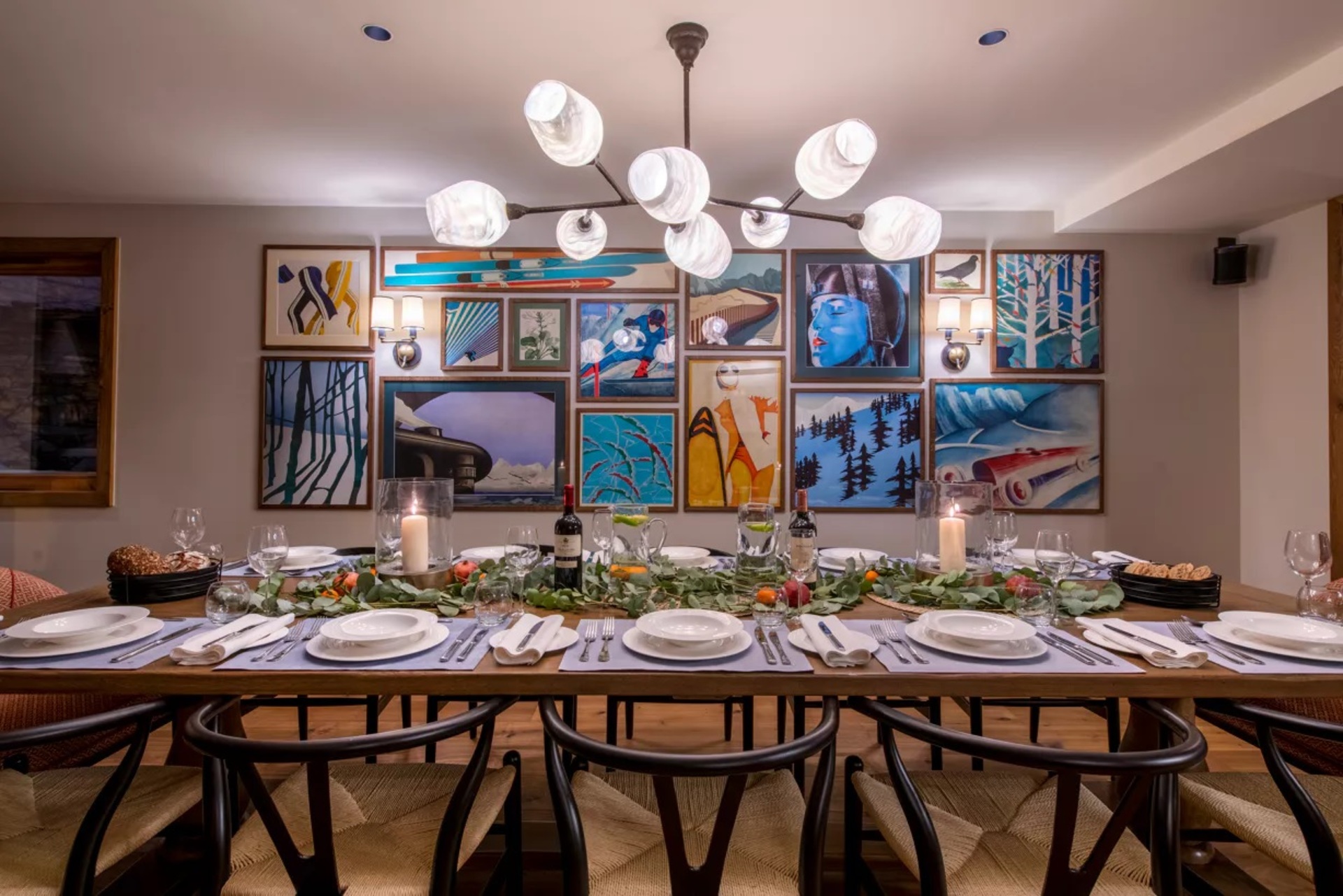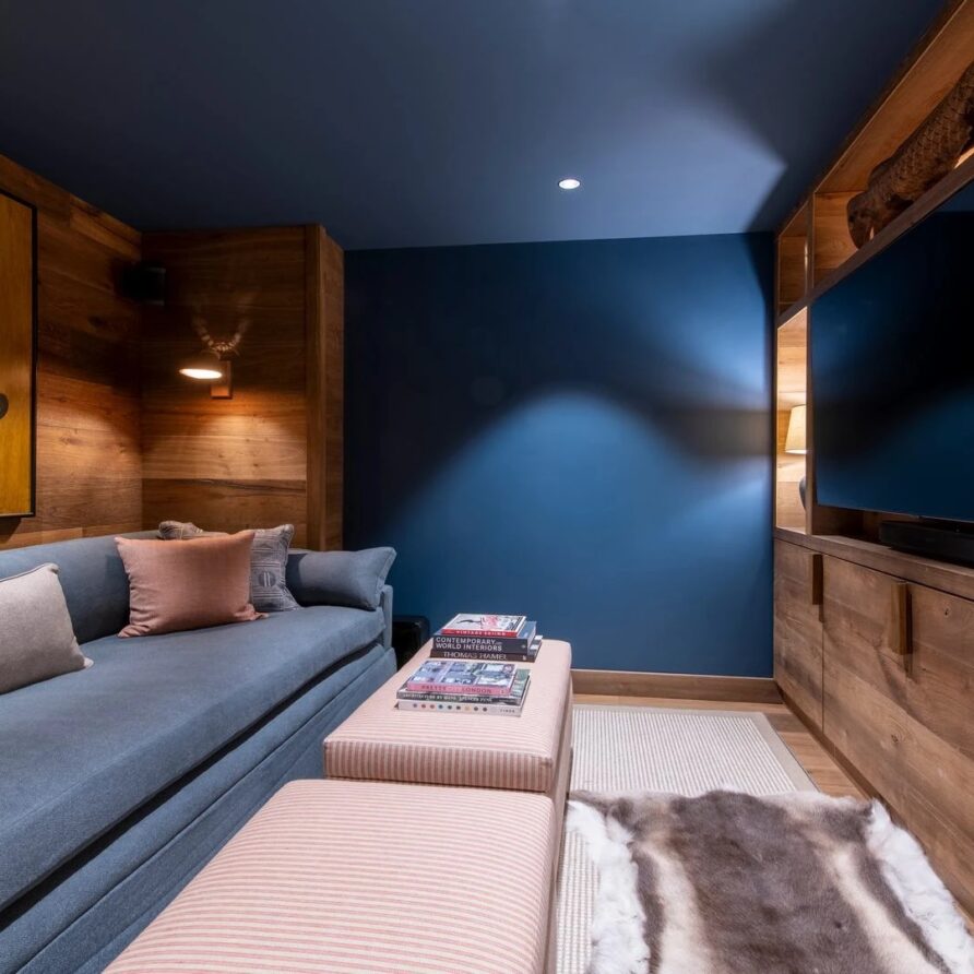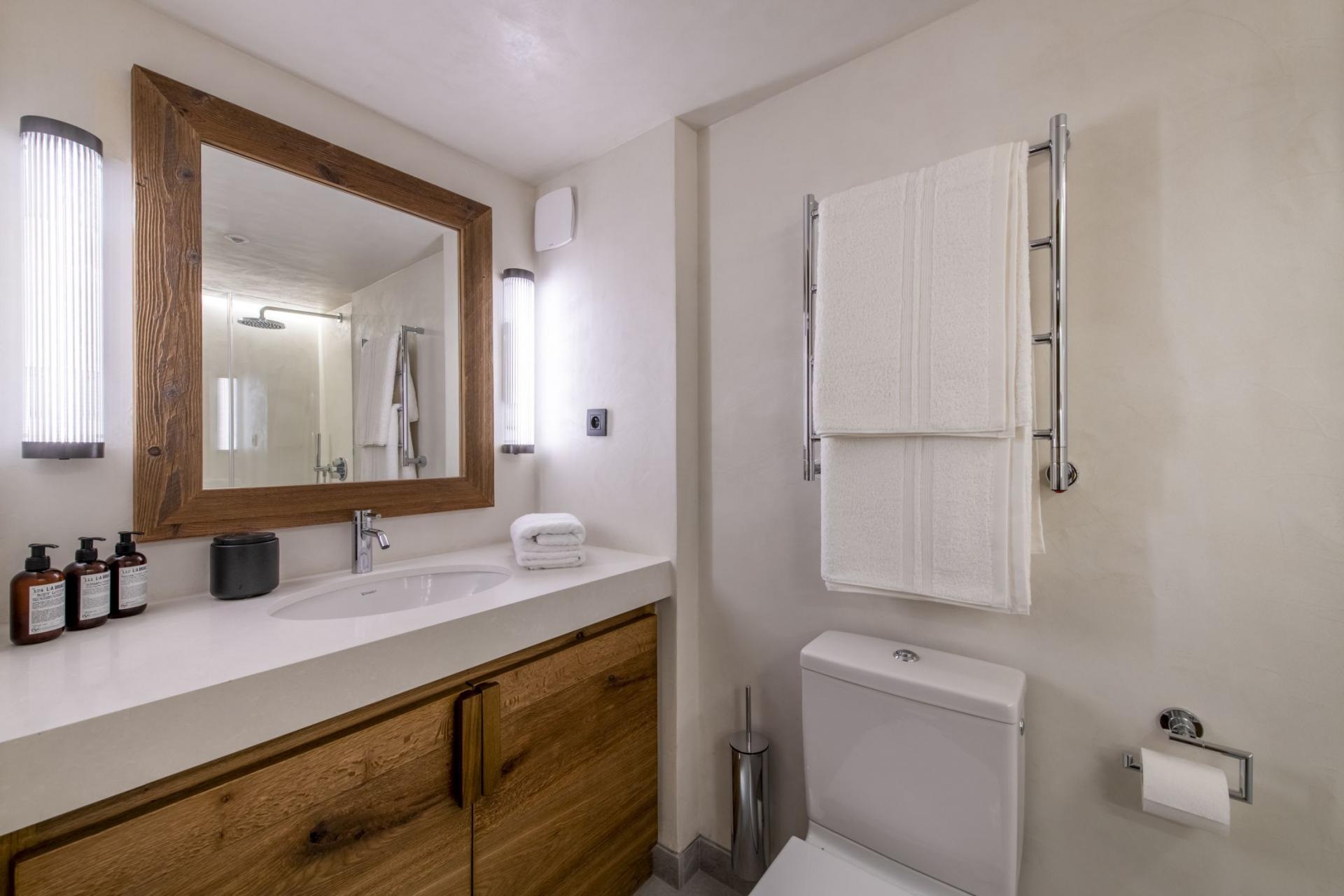 The dining area is set off the living area and is a beautiful setting for dinners with friends and family. The open fireplace elevates the elegant dining room further. The state of the art kitchen is situated off the dining room and has access to second balcony on this floor. A cozy cinema room is set off the hallway, perfect for family movie nights. The chalet is equipped with the latest technology including high speed fiber optic WiFi, NetFlix, Apple TV and Sonos sound system. There is also a guest WC on this floor.