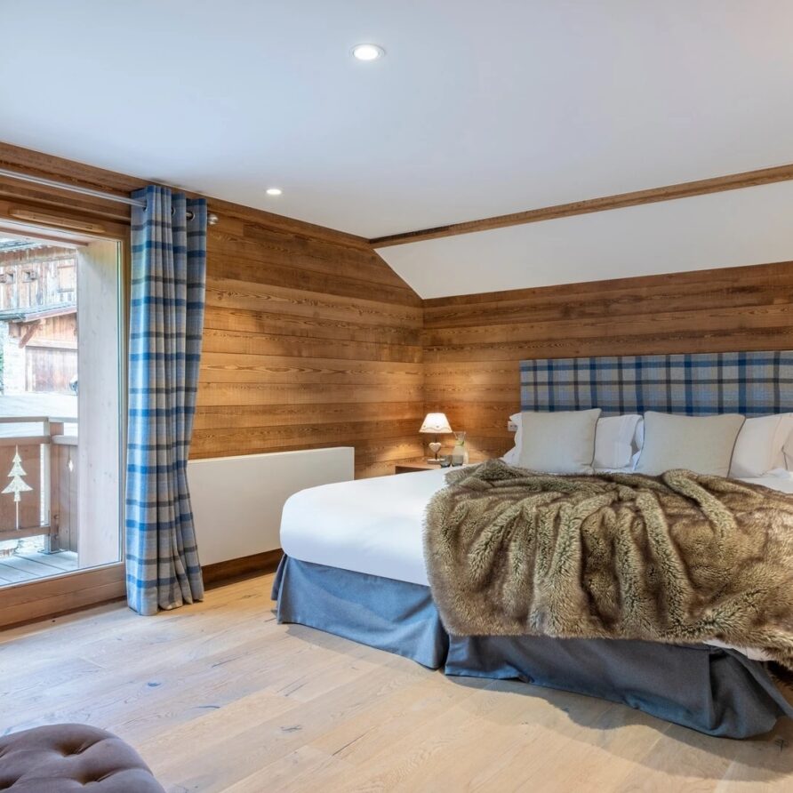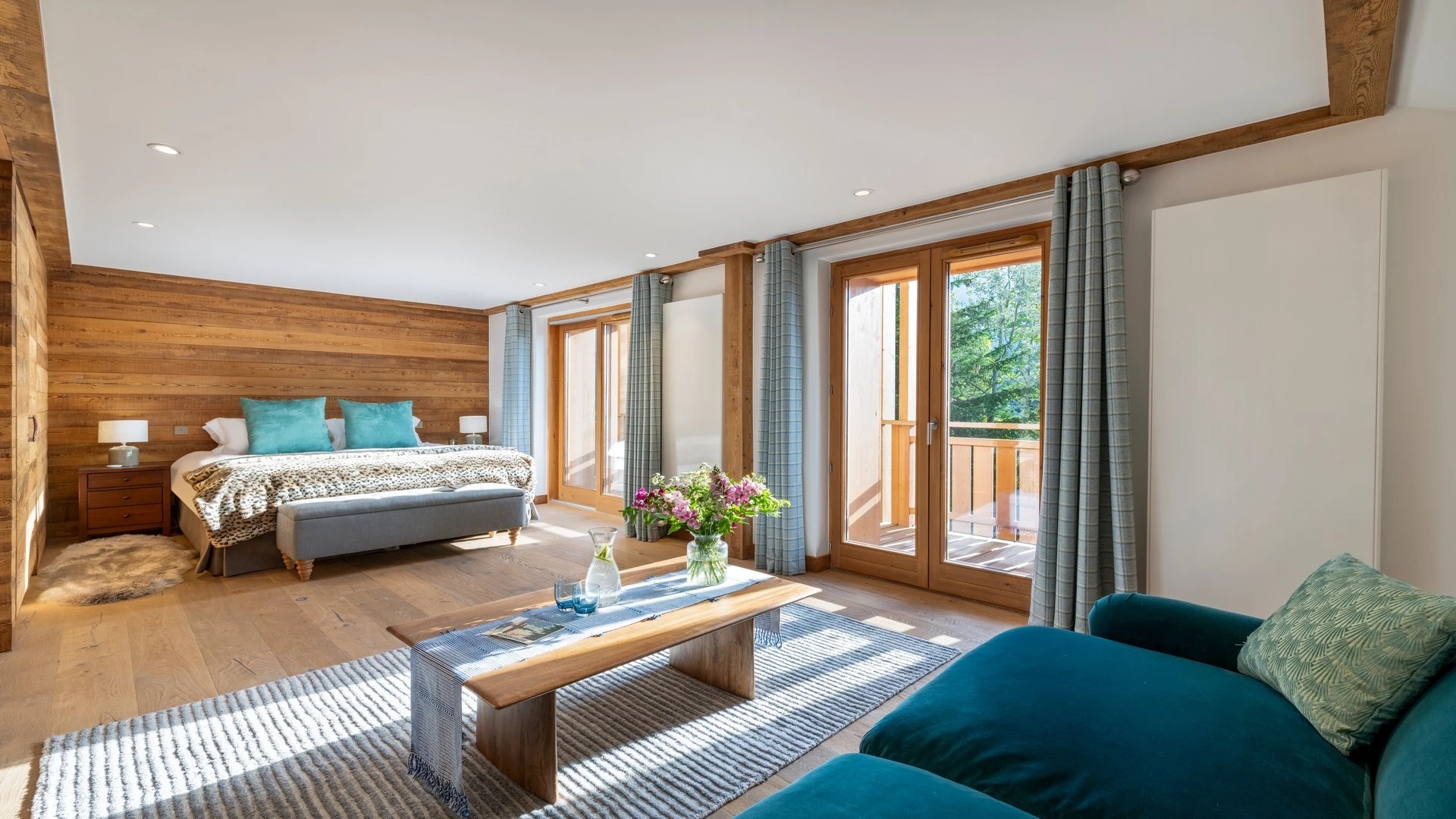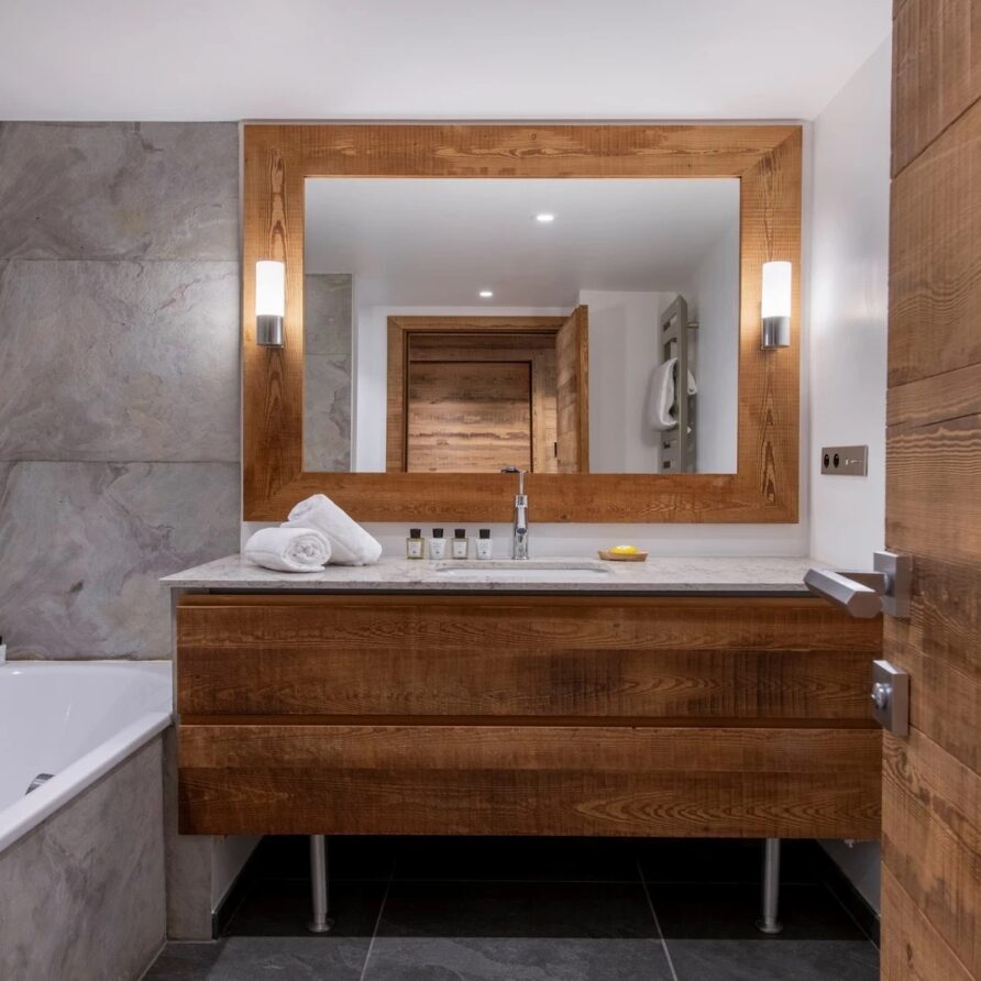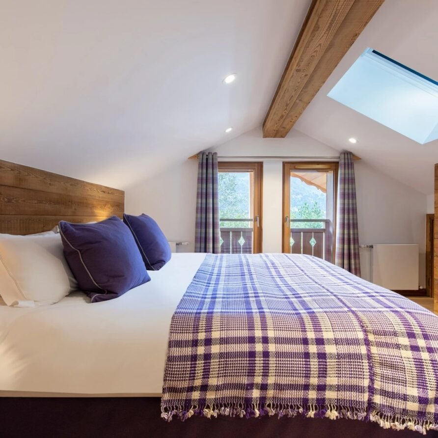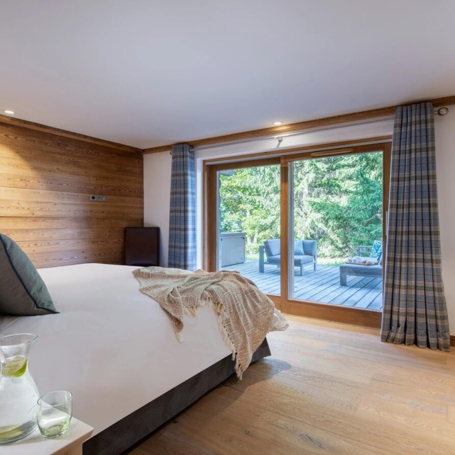 The bedrooms in the chalet are thoughtfully distributed across three floors, ensuring plenty of privacy and comfort for every guest. Each room is tastefully decorated with a stylish blend of modern elegance and alpine charm, offering all the amenities you need for a luxurious and relaxing holiday. On the top floor, you’ll find a lovely double/twin bedroom with its own private balcony. This room features a separate private bathroom with a shower and twin sinks, providing a peaceful retreat with beautiful views.