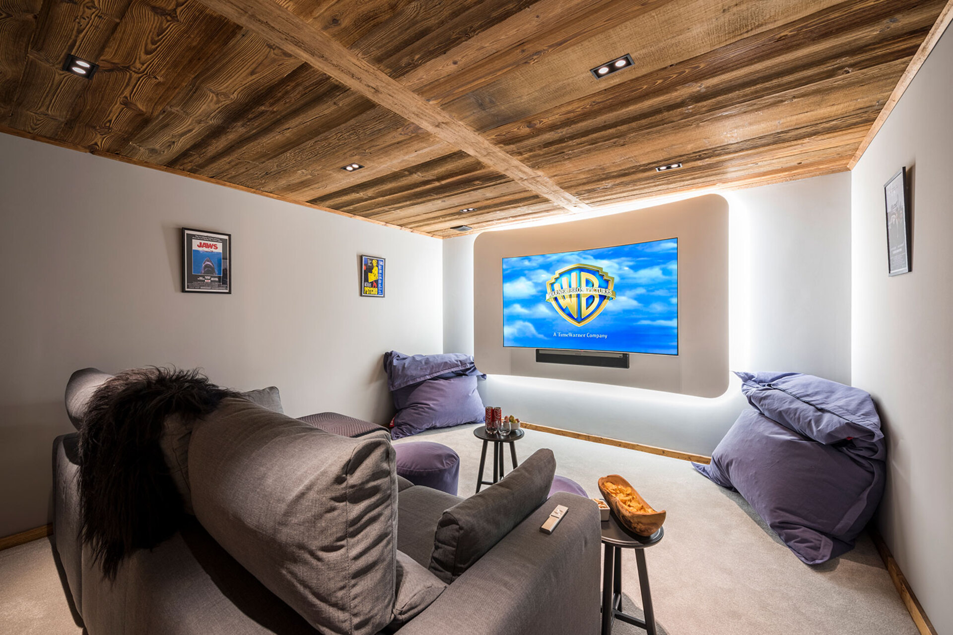 There is bar with pool table and TV, large windows open directly onto the large terrace – a wonderful place to watch the sun set. Watch the latest movies in the cinema room with digital surround. Behind the bar the professional staff prepare speciality cocktails – there are fine wines, craft beers and a range of speciality gins to sample.