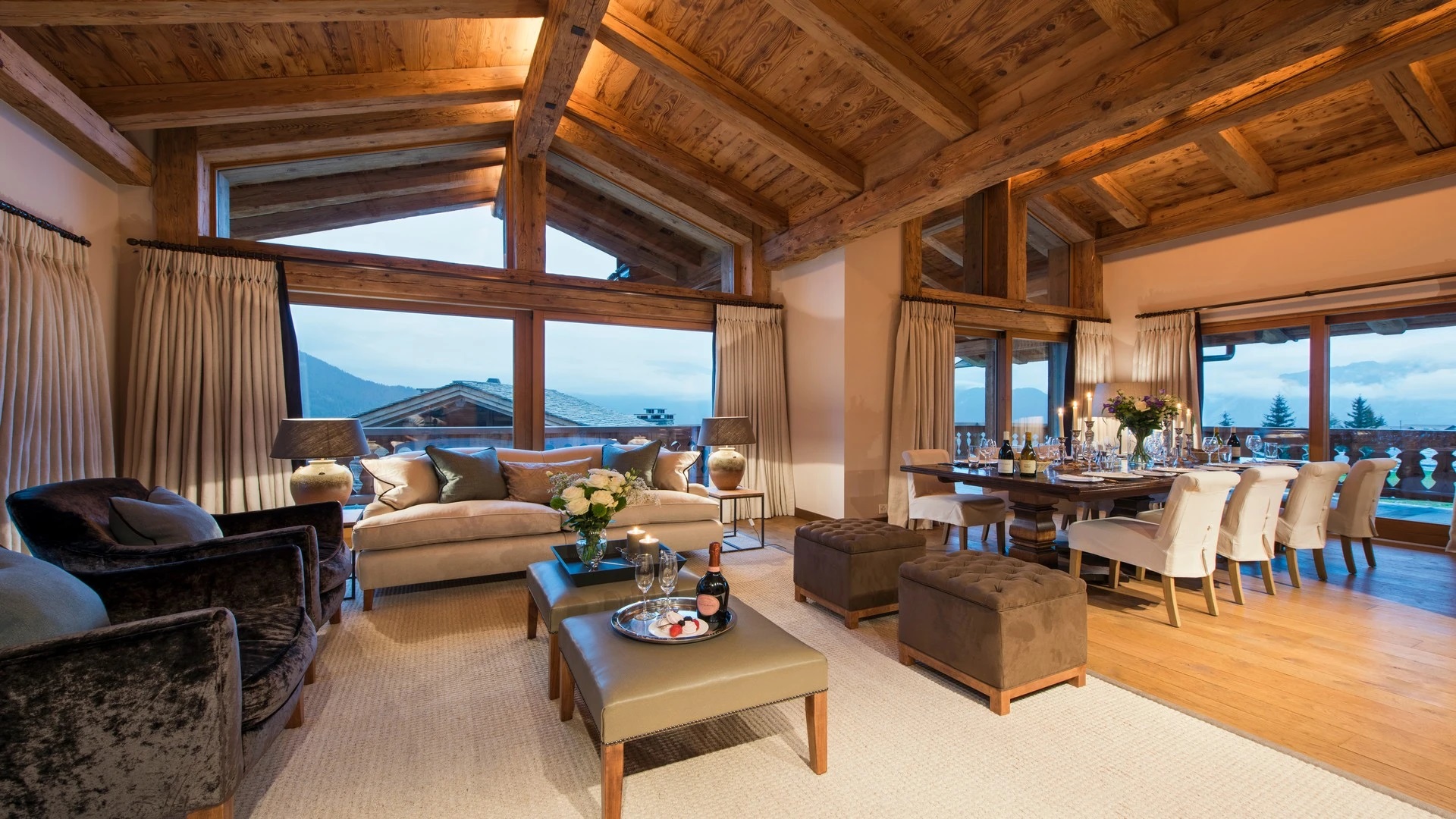 This luxurious ski chalet with spa in Verbier offers a spectacular retreat for holidays and can accommodates 8 individuals in 4 opulent bedrooms. Experience impeccable style and sophistication throughout its entirety.