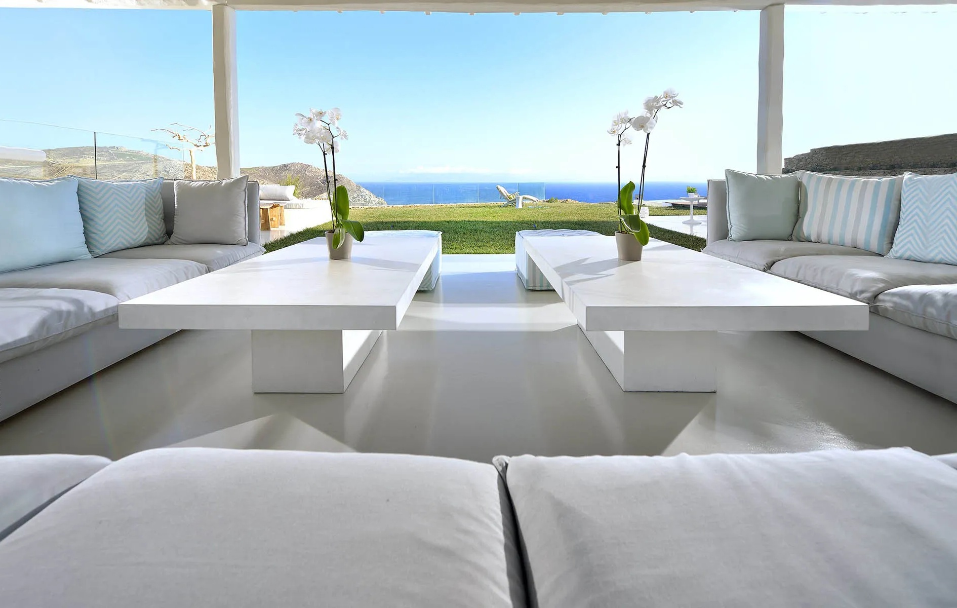 Throughout the villa’s living spaces the decor is uber stylish; with soft neutral tones and exposed natural materials used to create a chic seaside feel.