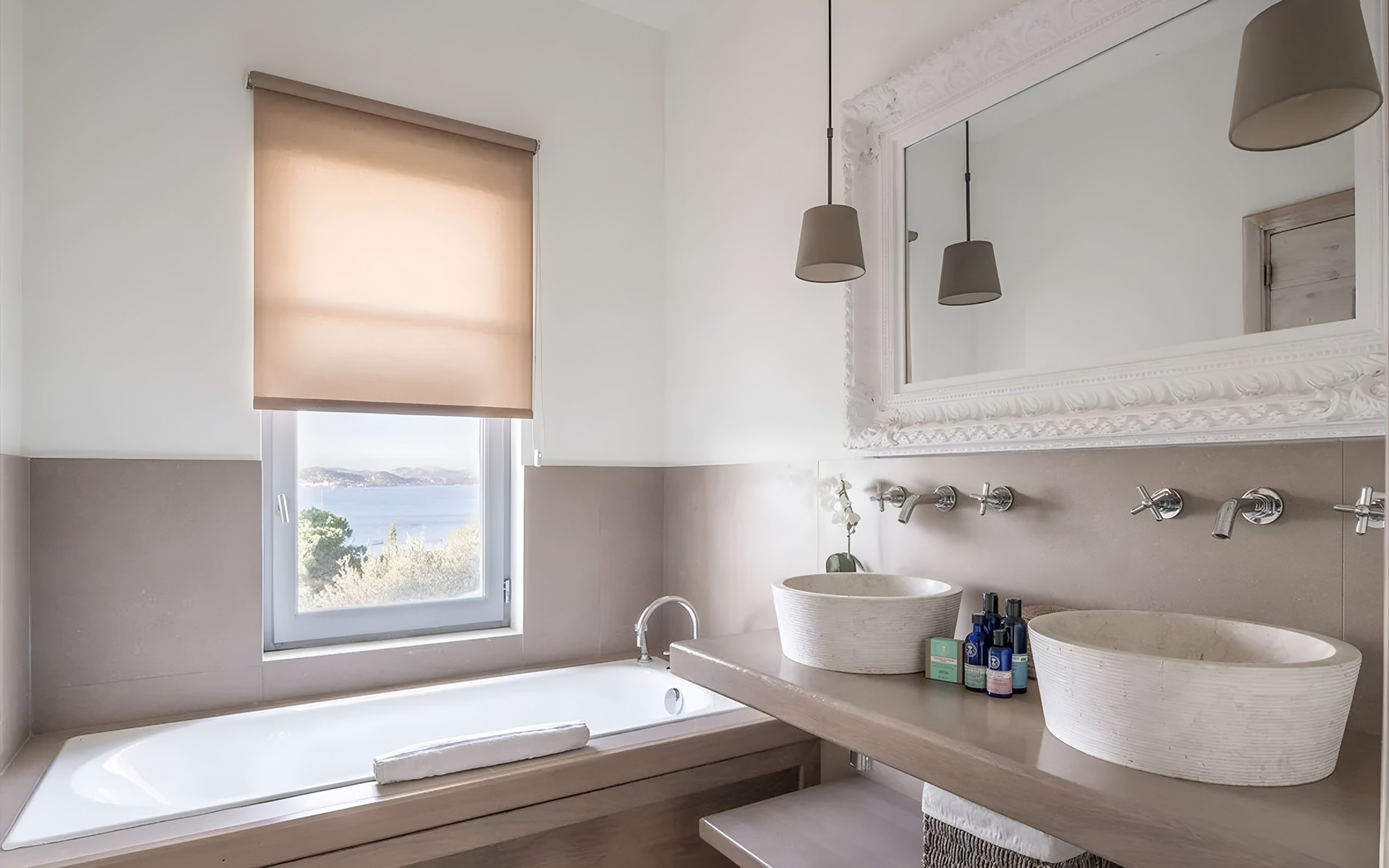 In total, the villa can accommodate 12 guests across 6 spacious bedrooms found on the lower and ground floors of the property. All bedrooms benefit from king-size double beds and en-suite facilities, and the majority also feature balcony/terrace access. 4 bedrooms are situated on the villa’s ground floor, with 2 remaining bedrooms on the lower ground floor. The master bedroom comes complete with balcony access, a dressing room and an en-suite bathroom with separate shower.