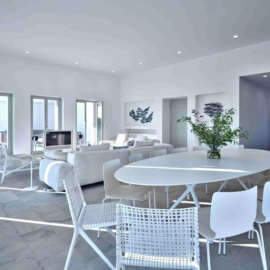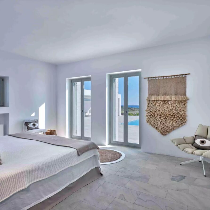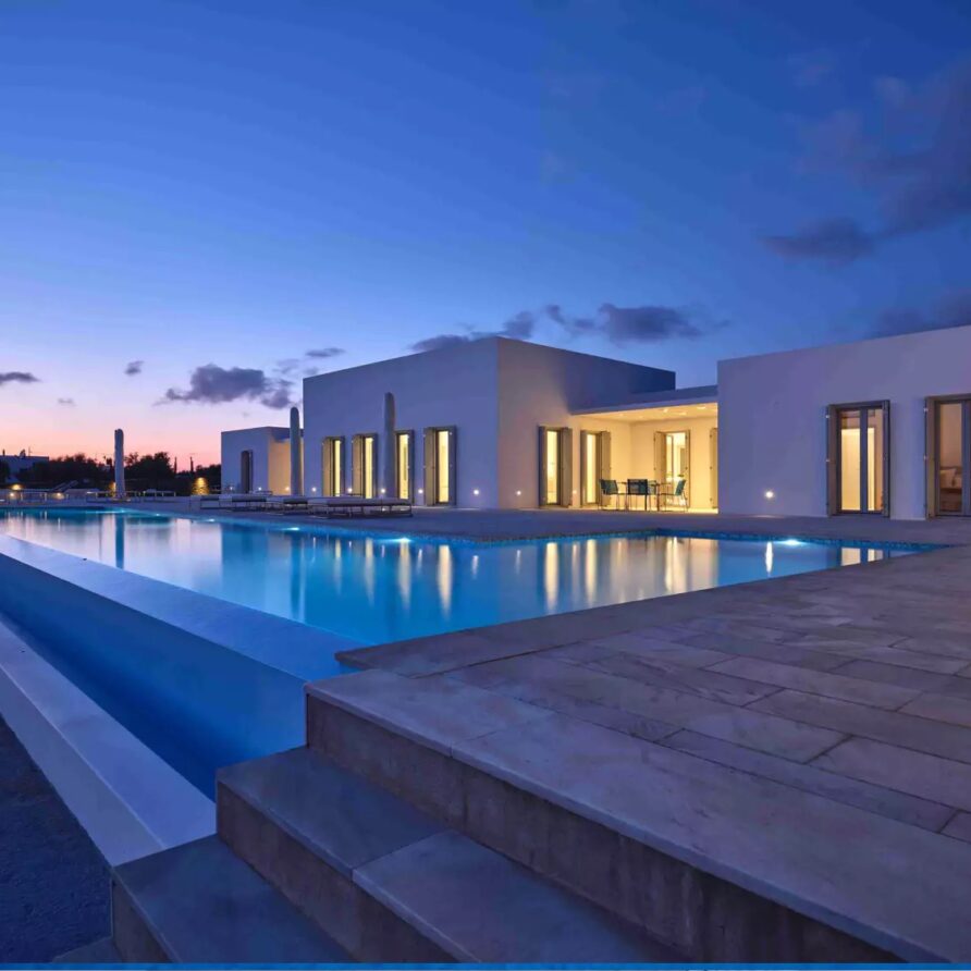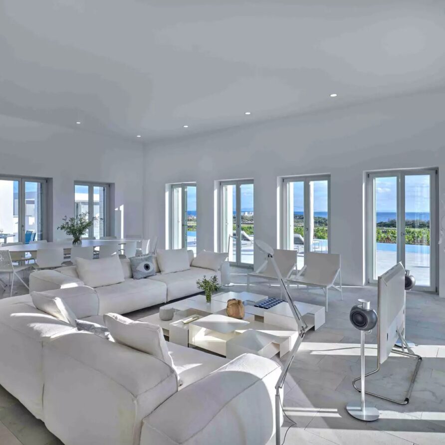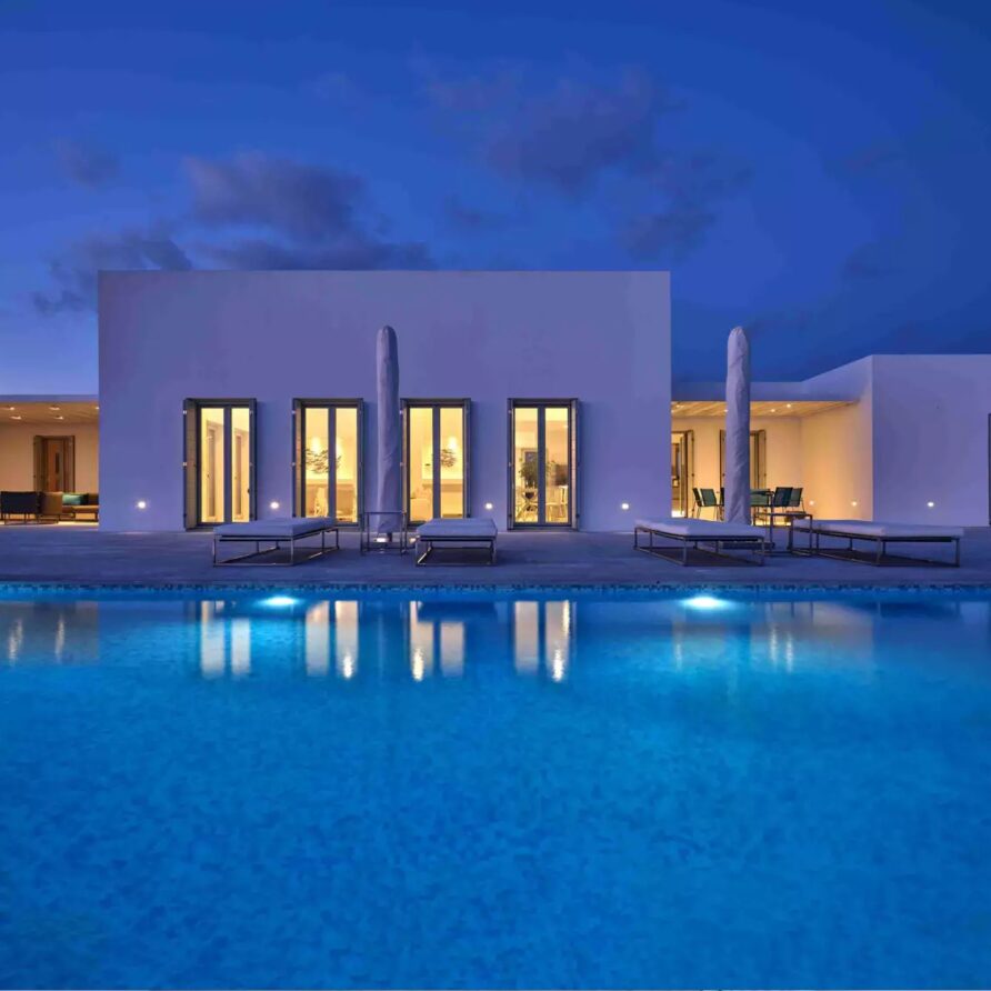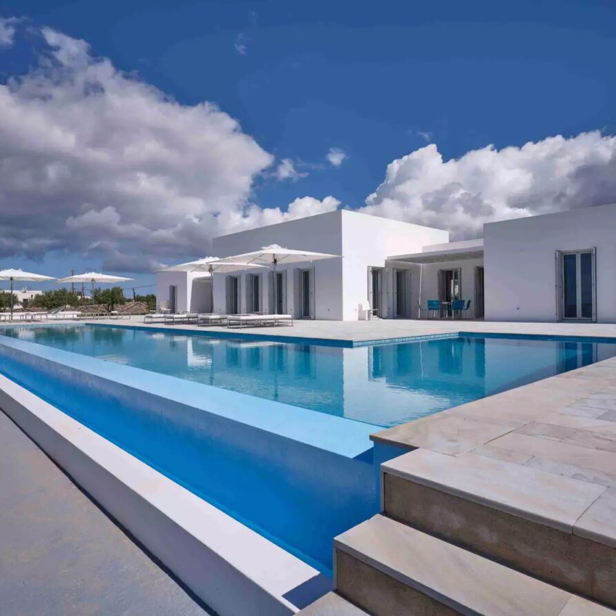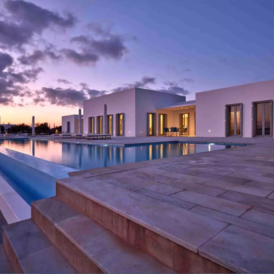 A unique property that plays with the colors of the sky reflecting on its vast pool and the white cubic formations of the local architecture, on which the sun reflects creating a canvas of shadow play, this villa will seduce you with its laid back comforts and unpretentious luxury.