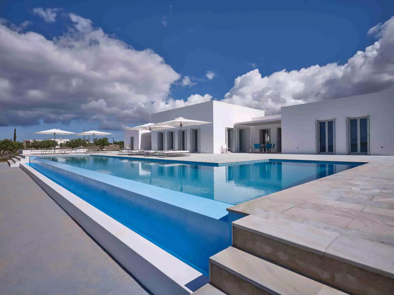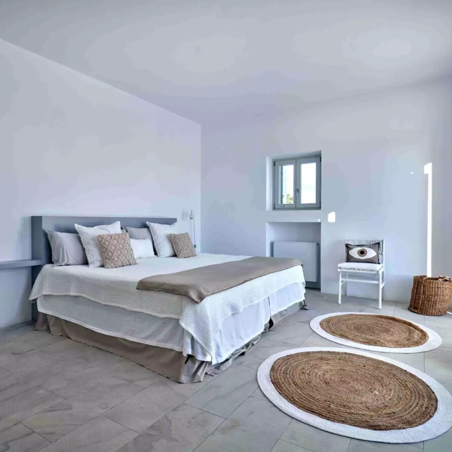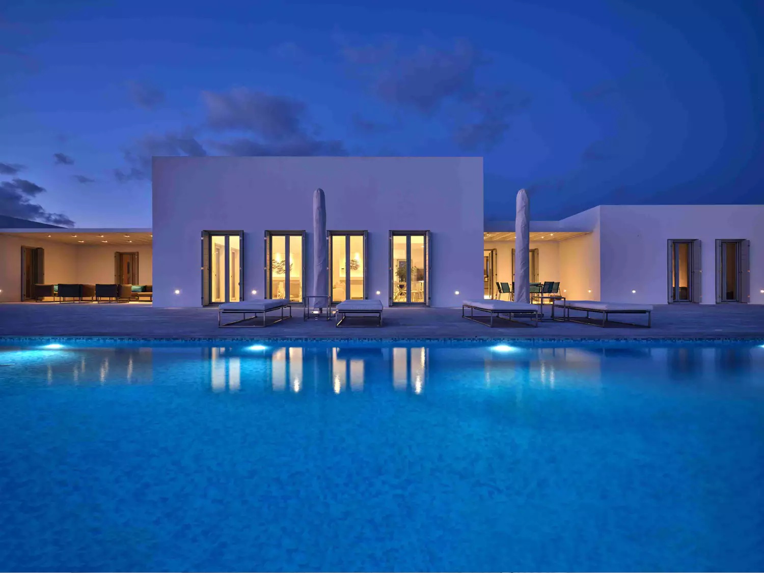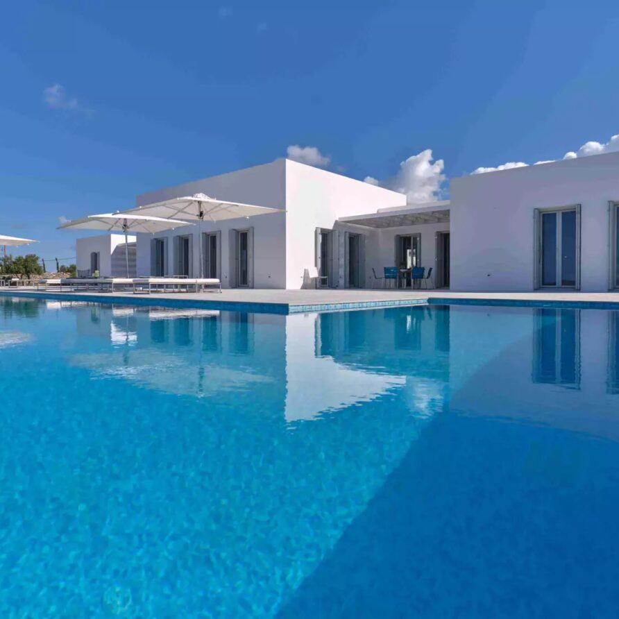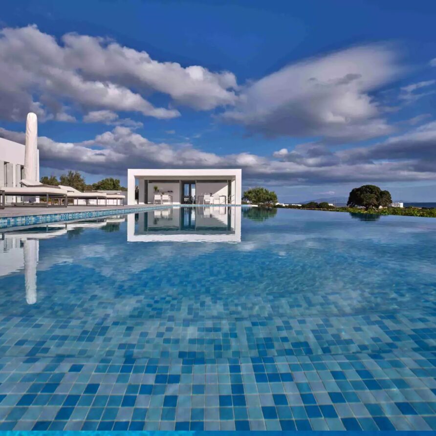 A unique property that plays with the colors of the sky reflecting on its vast pool and the white cubic formations of the local architecture, on which the sun reflects creating a canvas of shadow play, this villa will seduce you with its laid back comforts and unpretentious luxury.