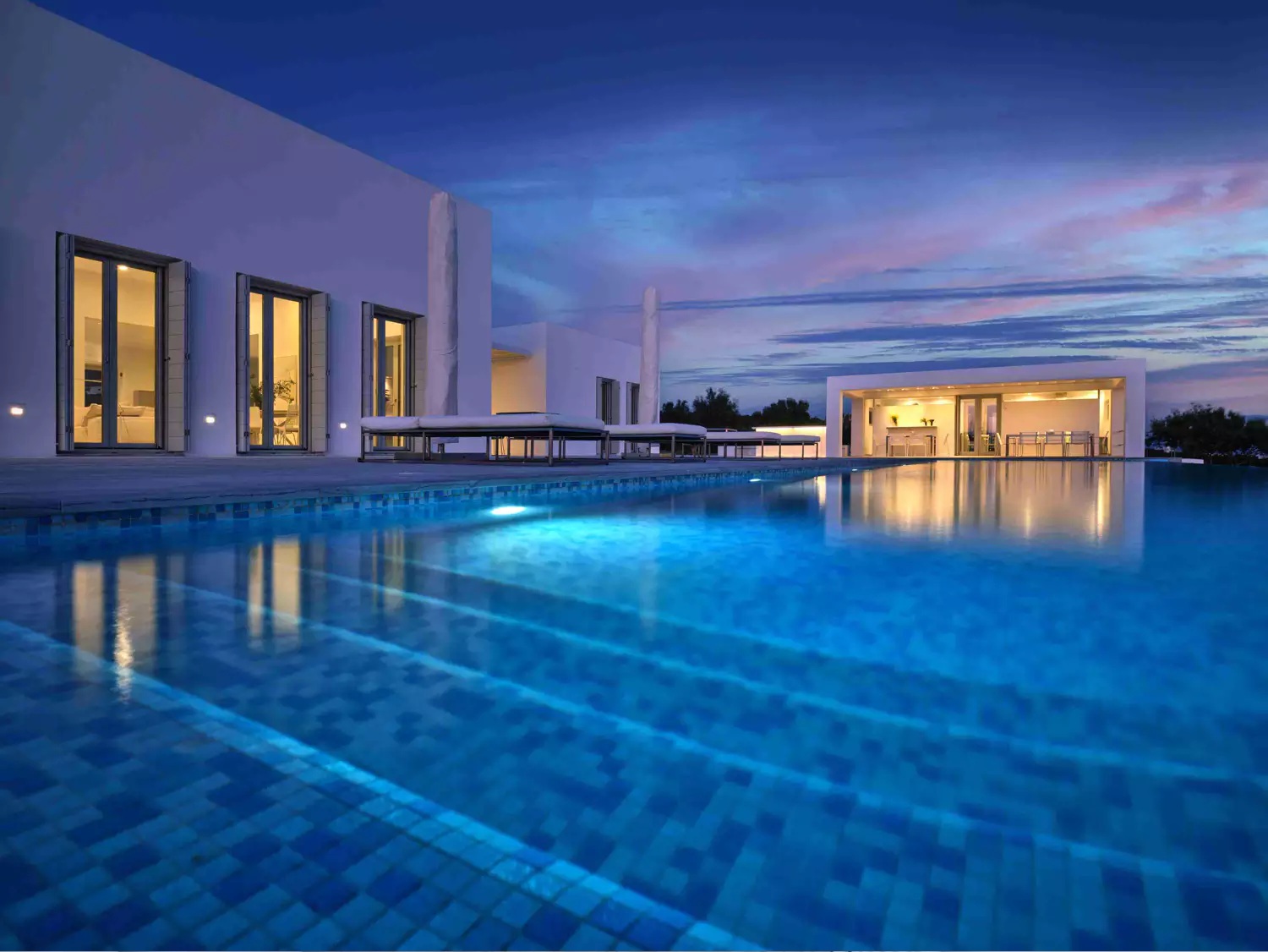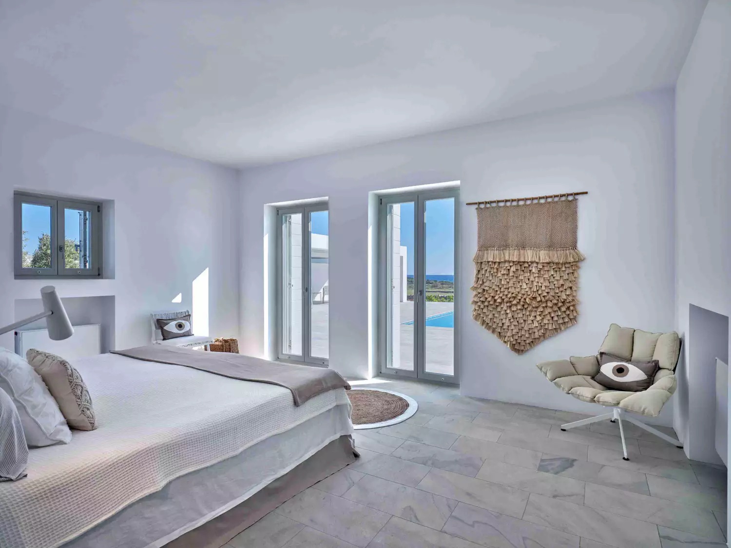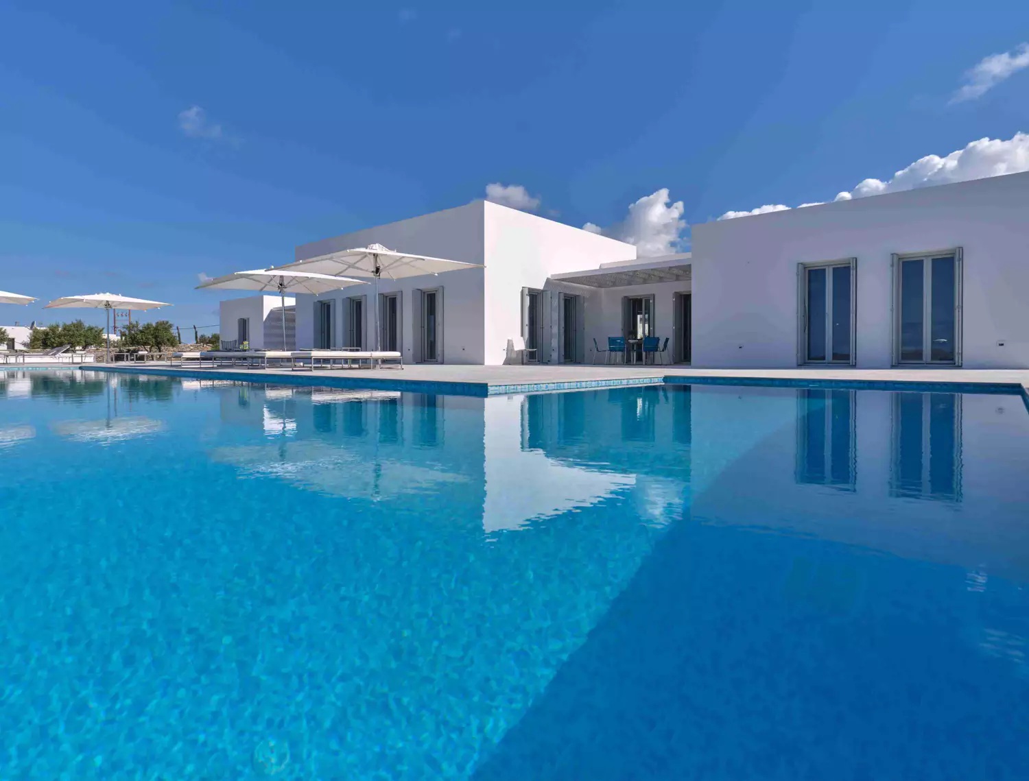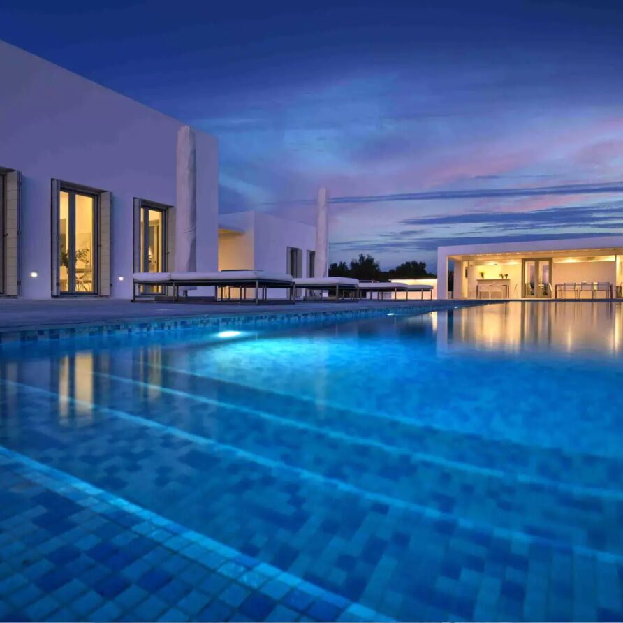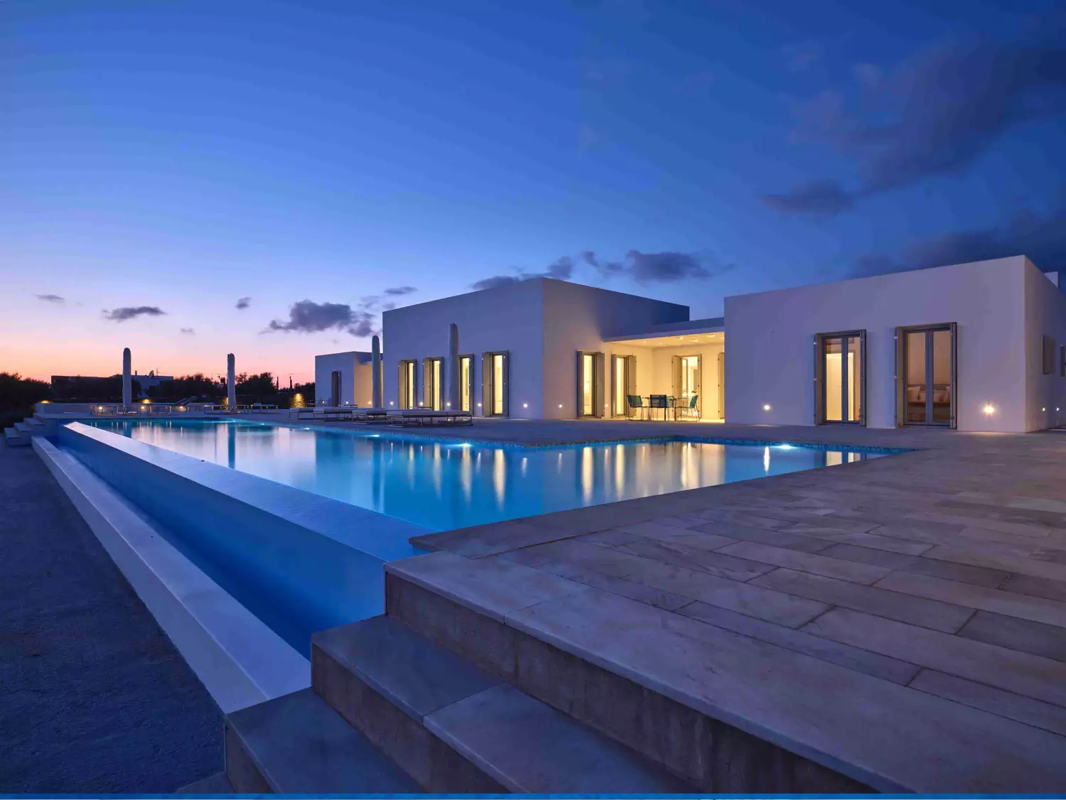 A unique property that plays with the colors of the sky reflecting on its vast pool and the white cubic formations of the local architecture, on which the sun reflects creating a canvas of shadow play, this villa will seduce you with its laid back comforts and unpretentious luxury.