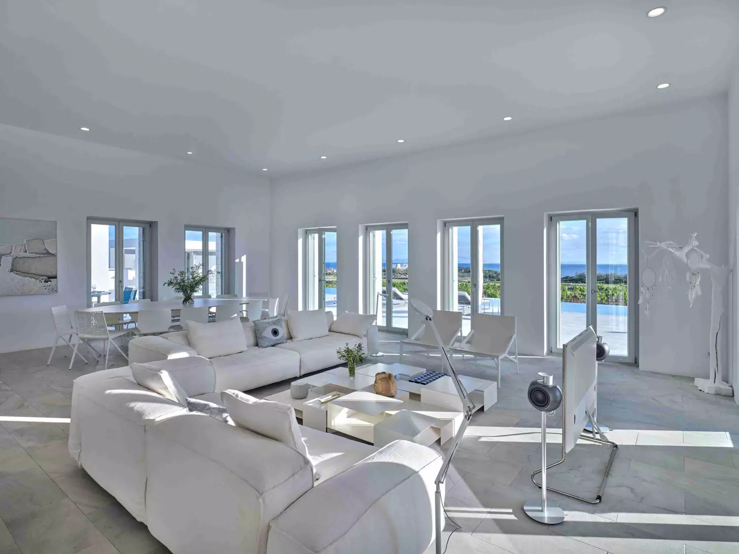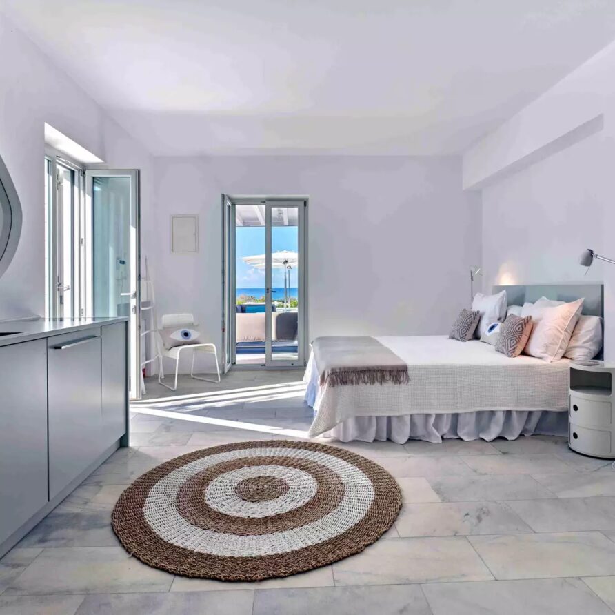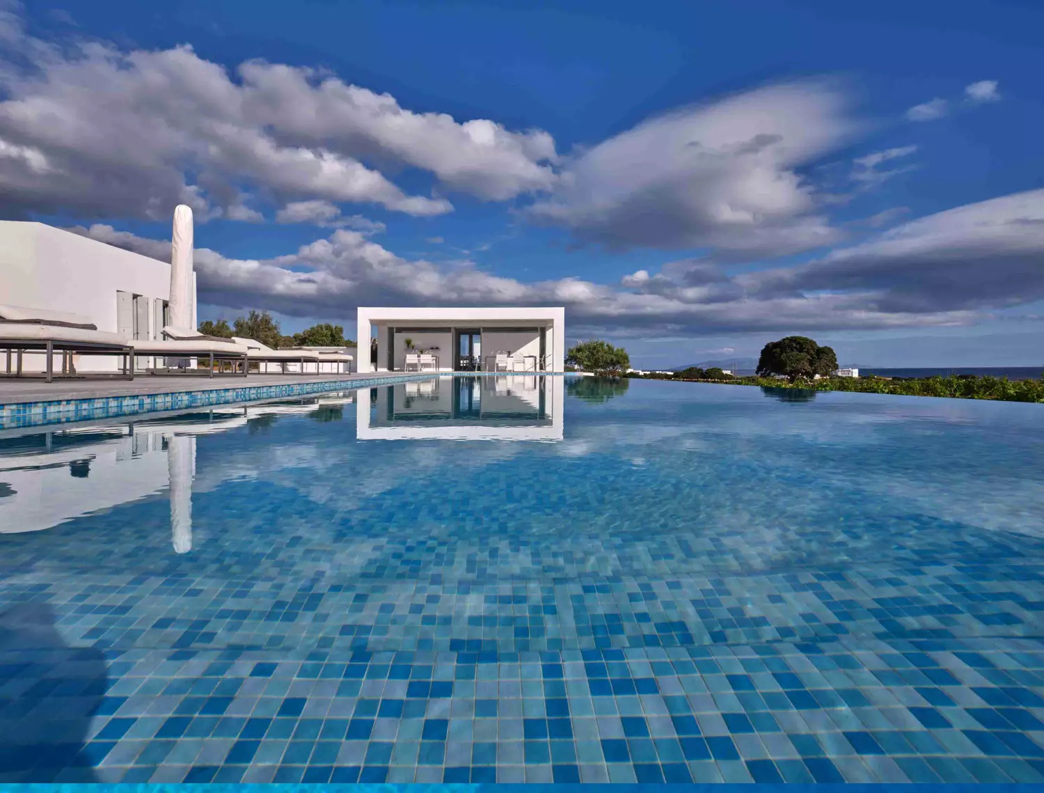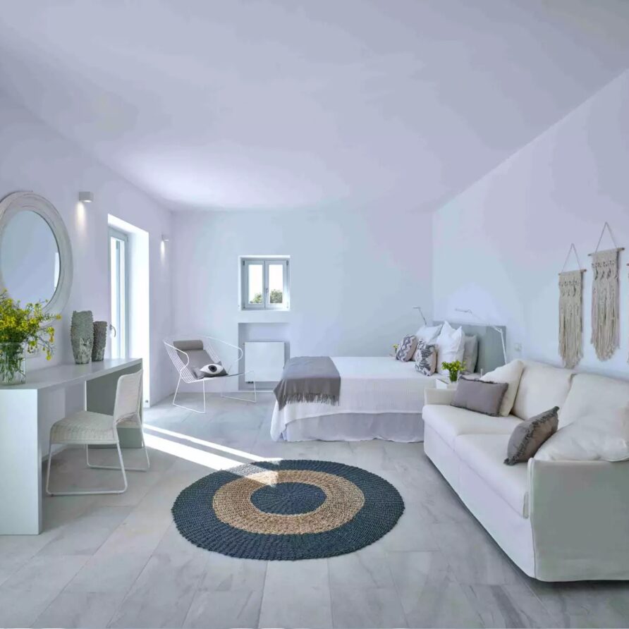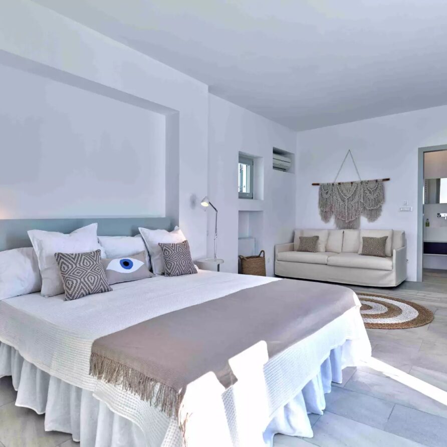 A unique property that plays with the colors of the sky reflecting on its vast pool and the white cubic formations of the local architecture, on which the sun reflects creating a canvas of shadow play, this villa will seduce you with its laid back comforts and unpretentious luxury.