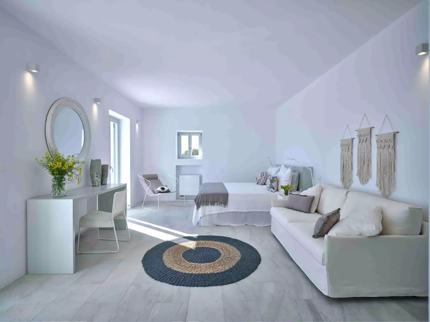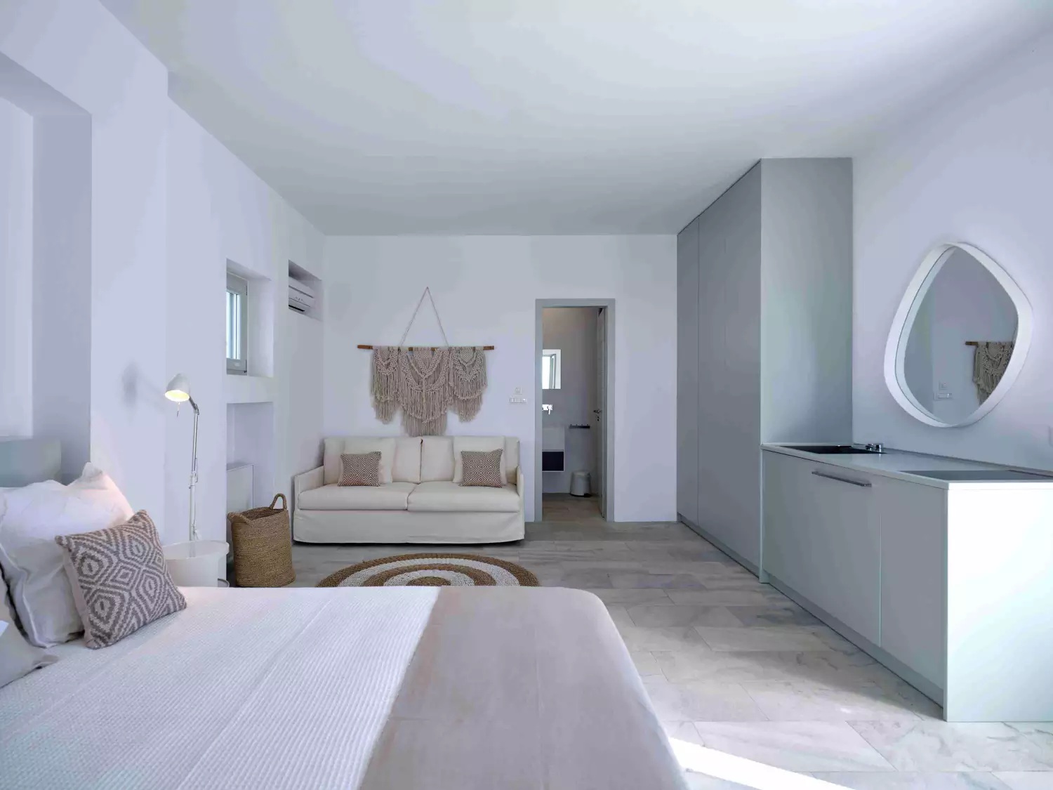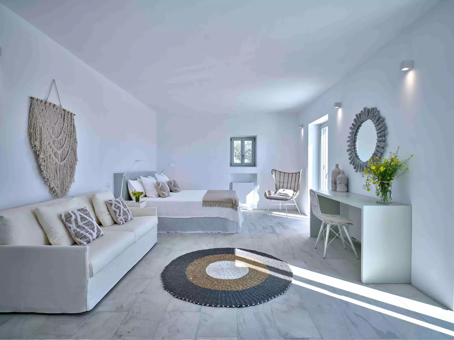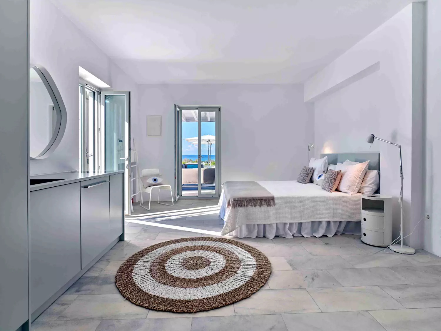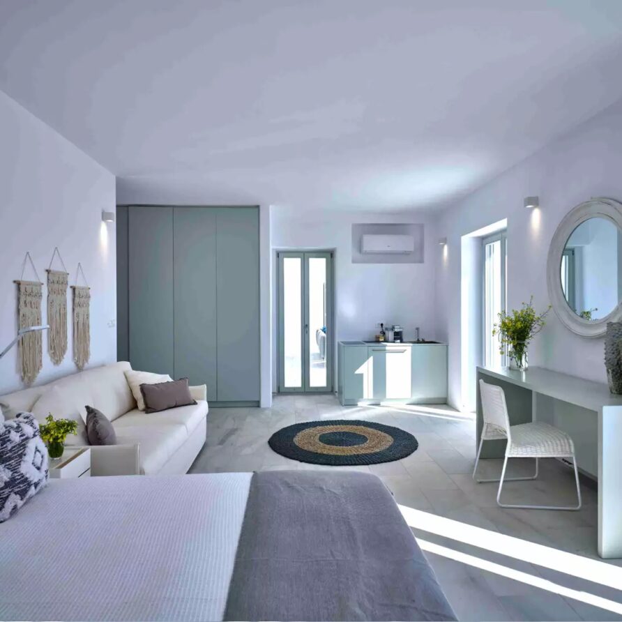 A unique property that plays with the colors of the sky reflecting on its vast pool and the white cubic formations of the local architecture, on which the sun reflects creating a canvas of shadow play, this villa will seduce you with its laid back comforts and unpretentious luxury.